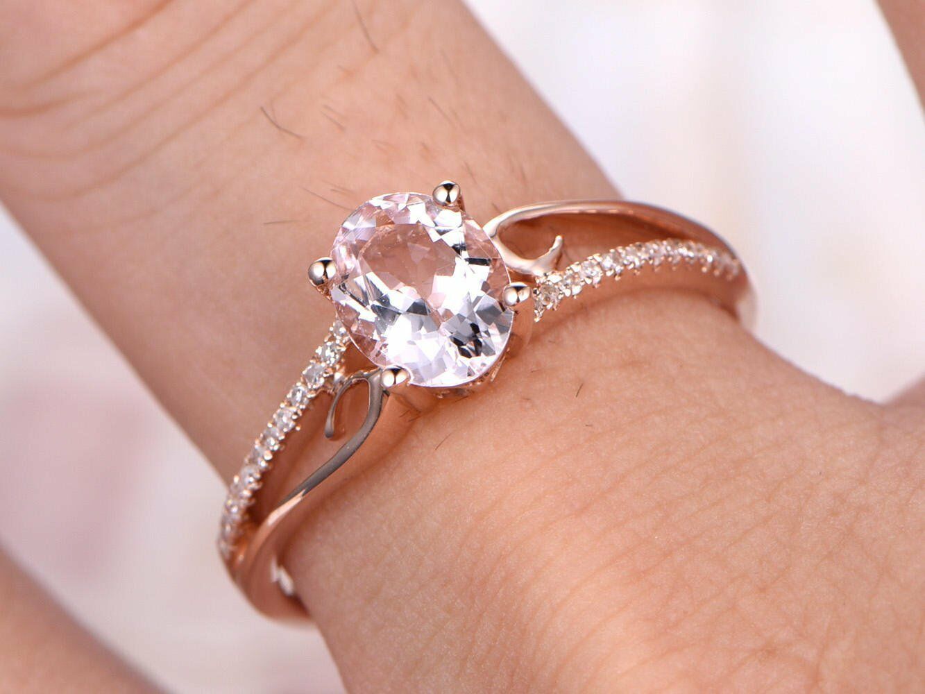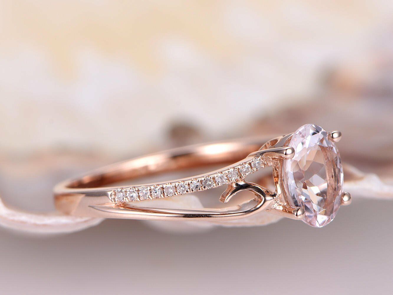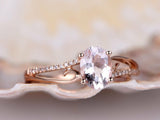 1.3ct Oval Cut Peach Morganite Split Shank Engagement Ring 14k Rose Gold Finish