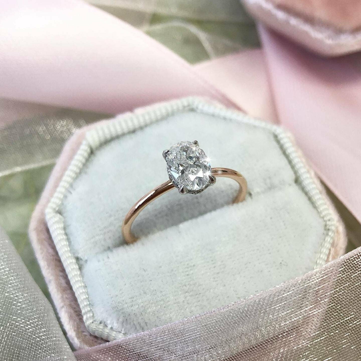 1.3ct Oval Cut VVS1 Diamond Halo Solitaire Engagement Ring 14k Rose Gold Finish
