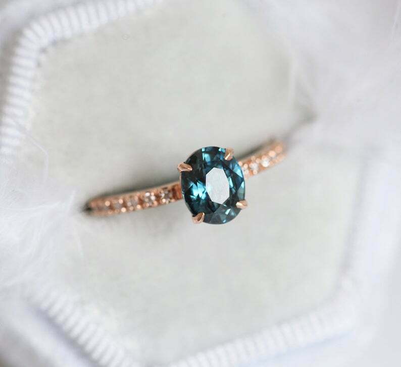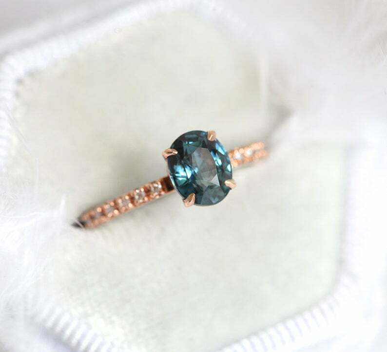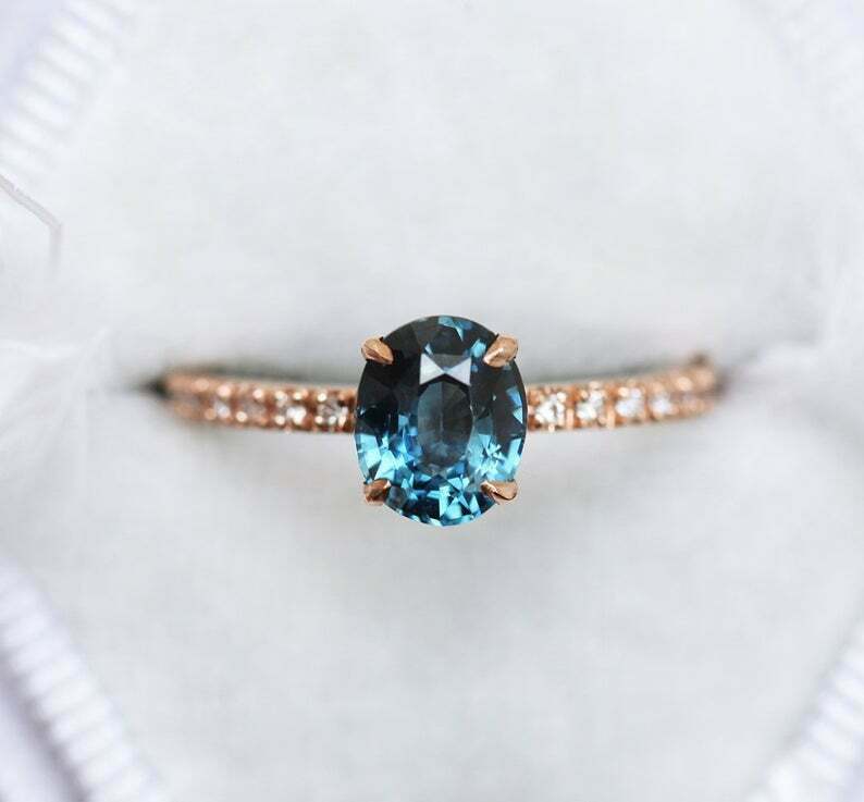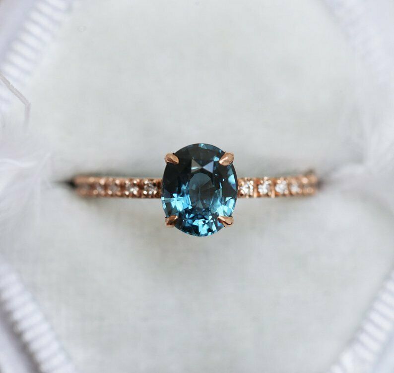 1.3ct Oval London Blue Topaz Engagement Ring 14k Rose Gold Finish Diamond Accent