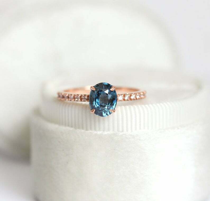 1.3ct Oval Cut London Blue Topaz Engagement Ring 14k Rose Gold Finish Diamond Accents
