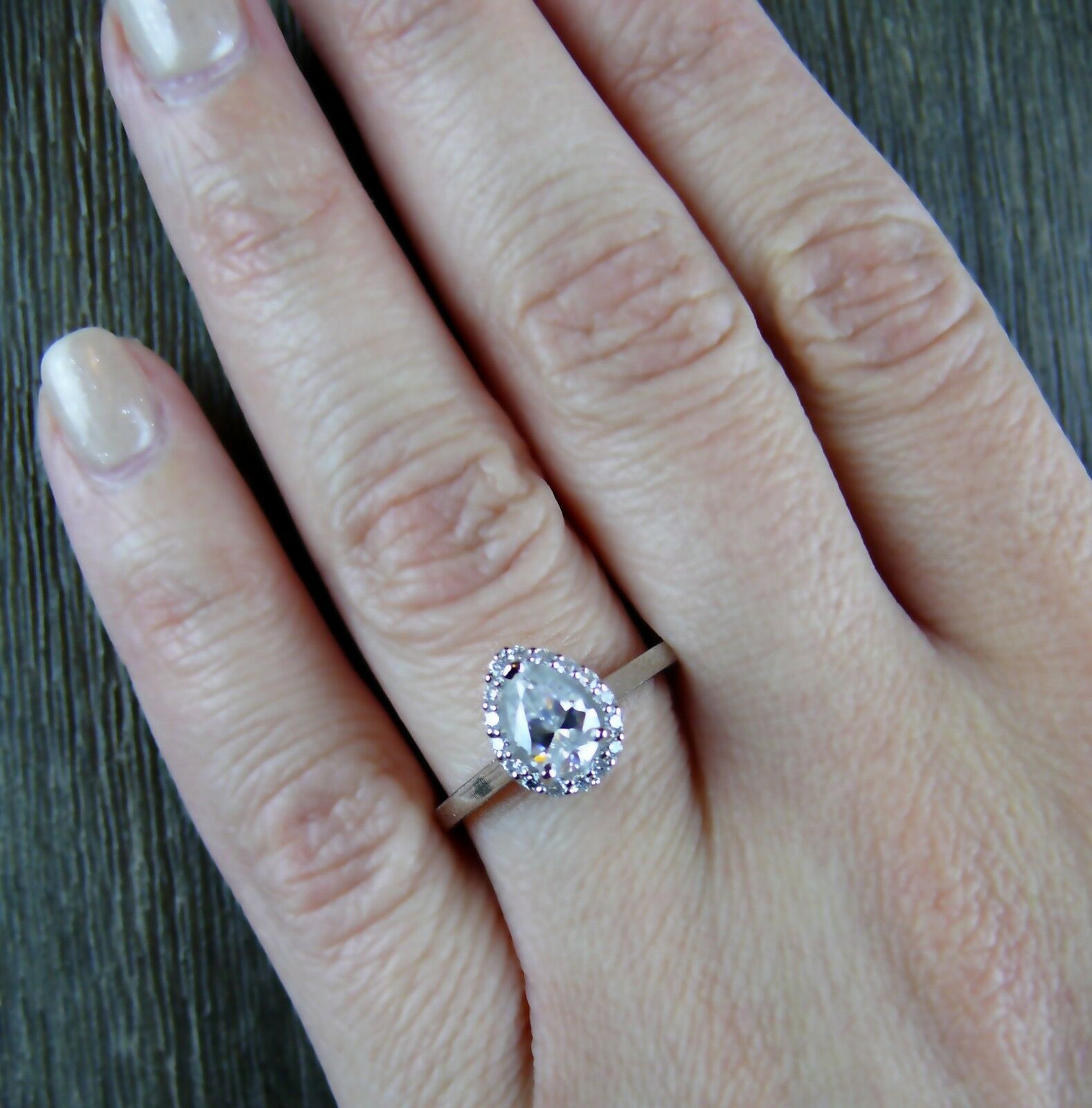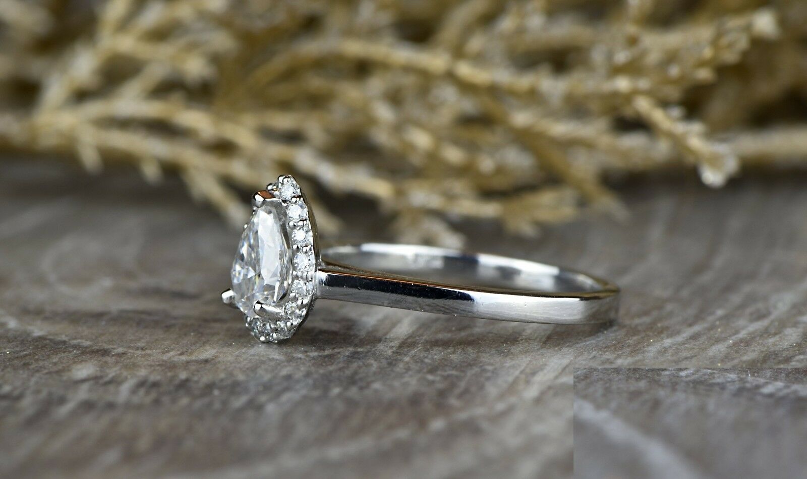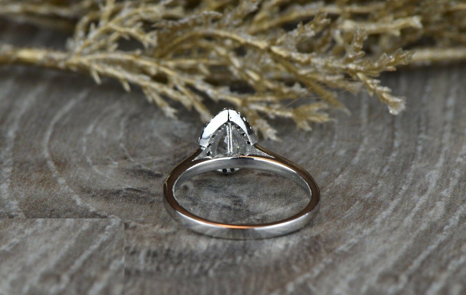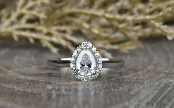 1.3ct Pear Diamond Engagement Ring 14k White Gold Finish Halo Solitaire Teardrop
