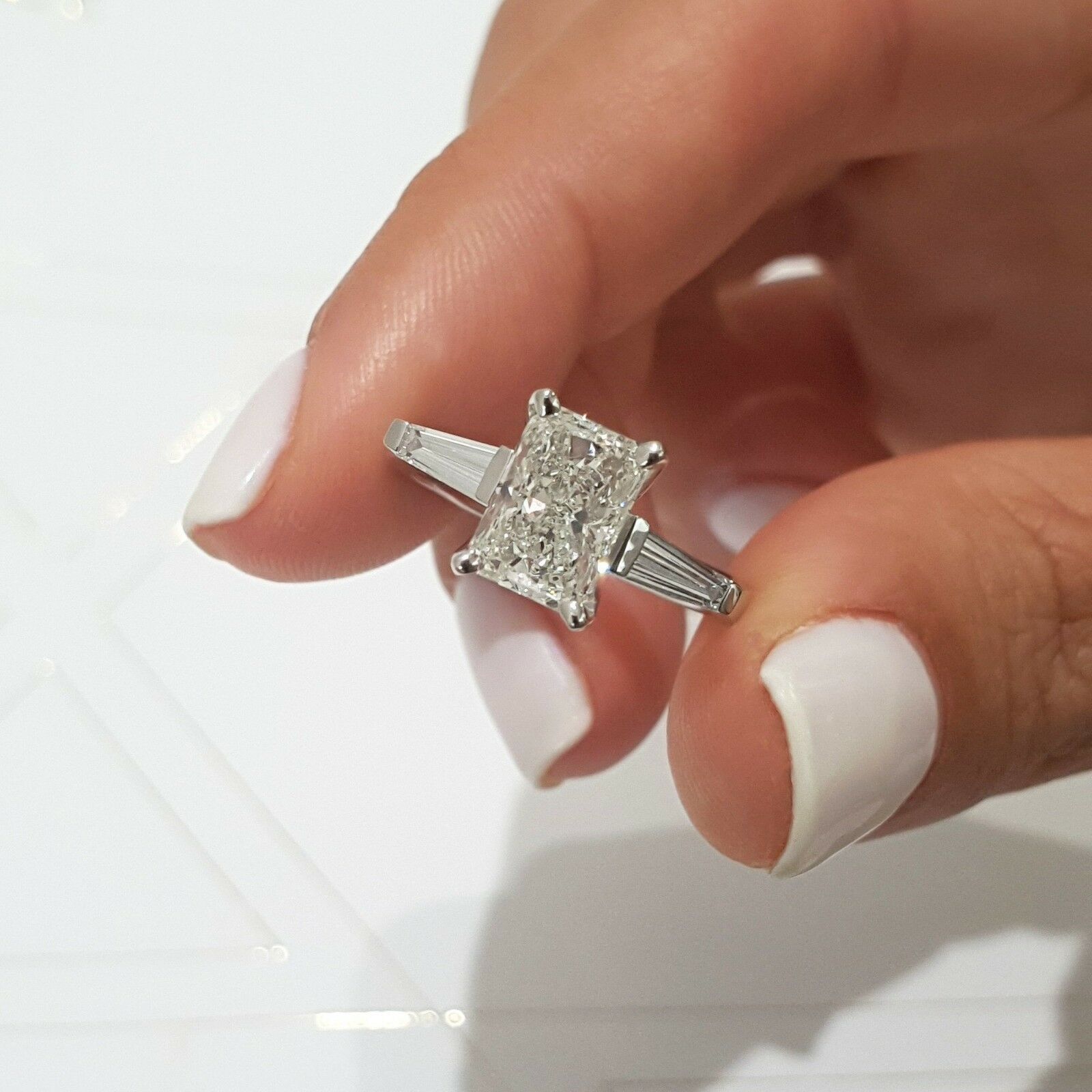 1.3ct Radiant Cut Diamond Baguette Sides Engagement Ring 14k White Gold Finish