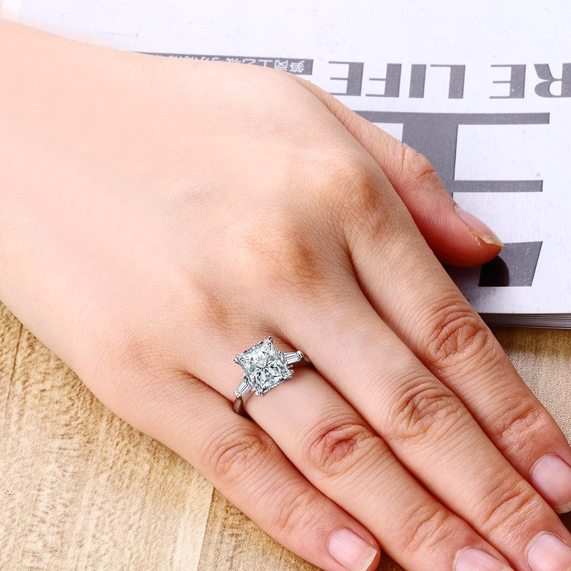 1.3ct Radiant Cut Diamond Engagement Ring 14k White Gold Finish Unique Trilogy