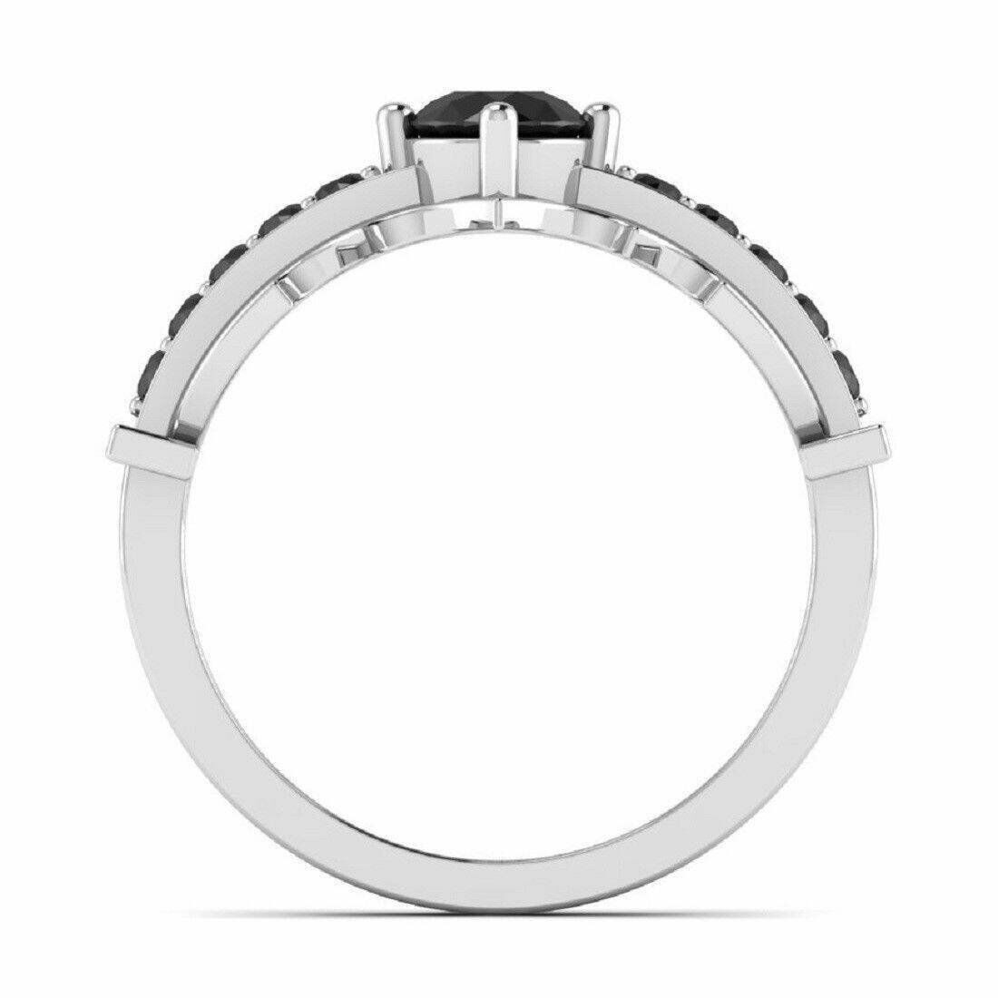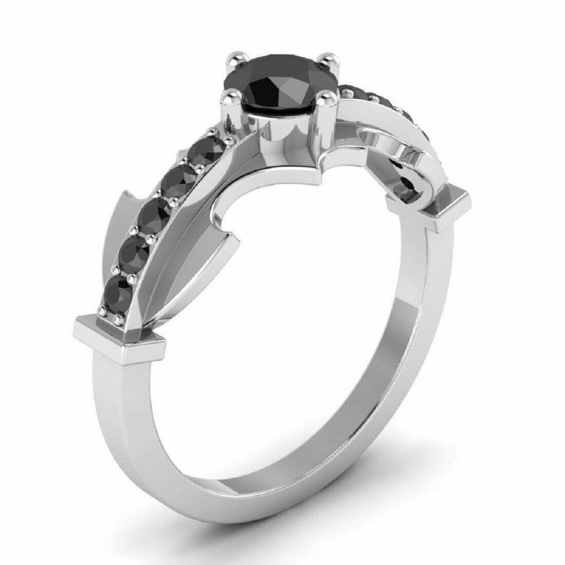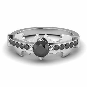 1.3ct Round Cut Black Diamond Bat Design Engagement Ring 14k White Gold Finish