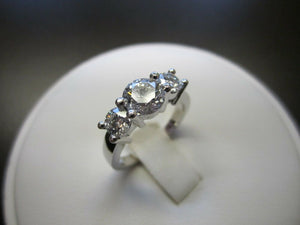 1.3ct Round Cut Diamond 3 Stone Solitaire Engagement Ring 14k White Gold Finish