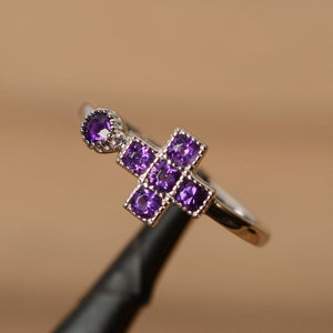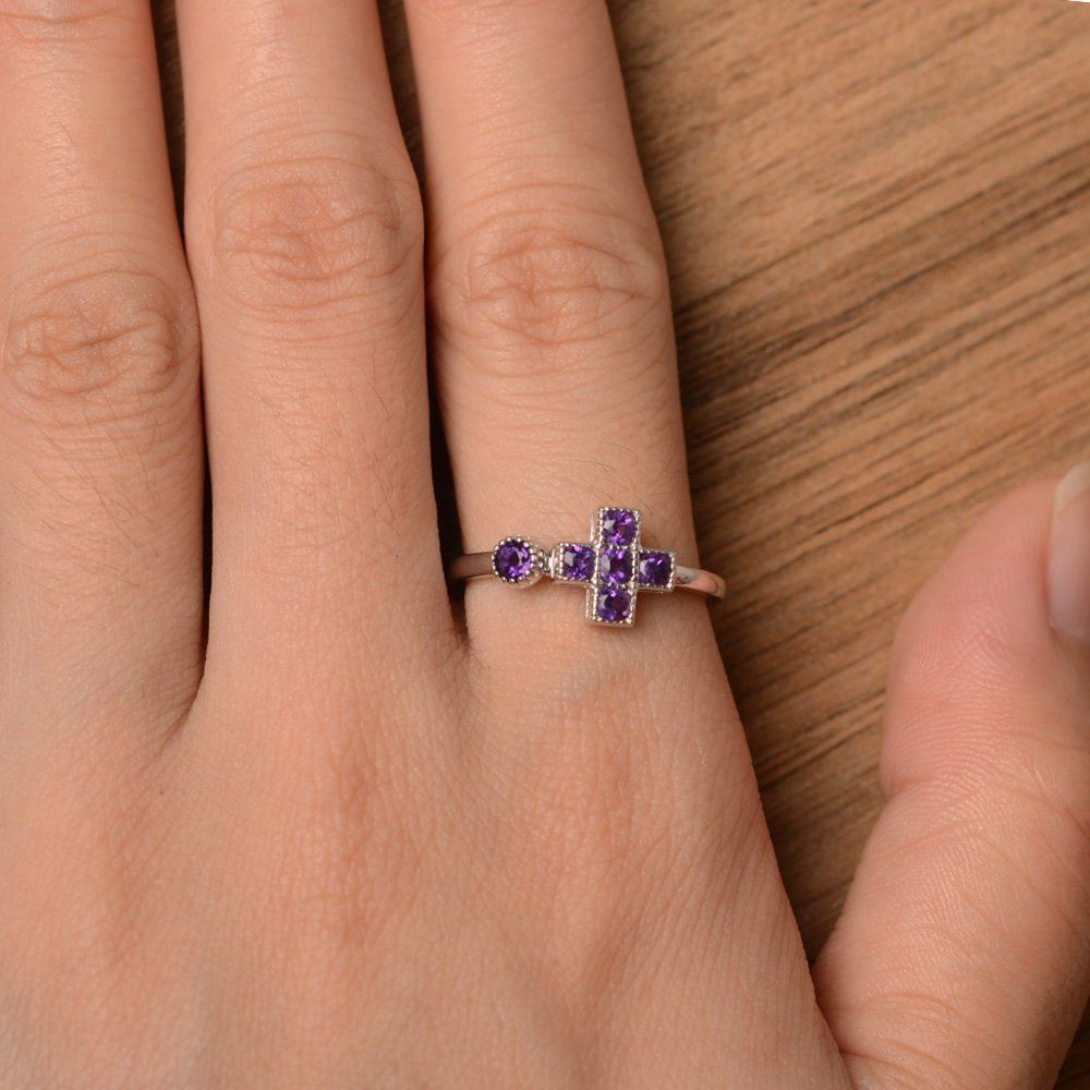 1.3ct Round Cut Purple Amethyst Jesus Cross Engagement Ring 14k White Gold Over