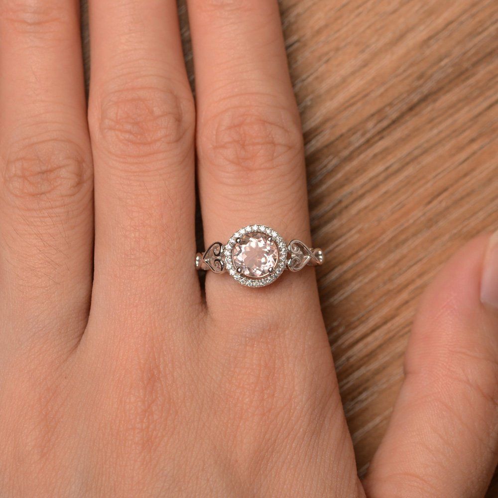 1.3ct Round Peach Morganite Promise Wedding Engagement Ring 14k WhiteGold Finish