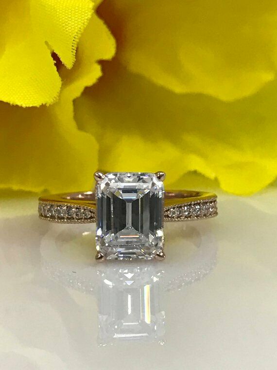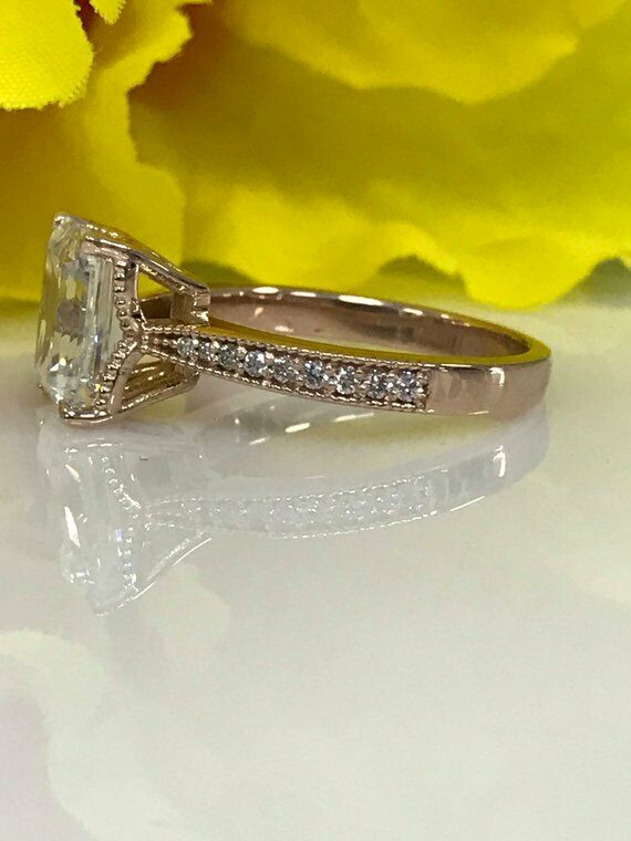 1.4ct Emerald Cut Diamond Accent Solitaire Engagement Ring 14k Rose Gold Finish