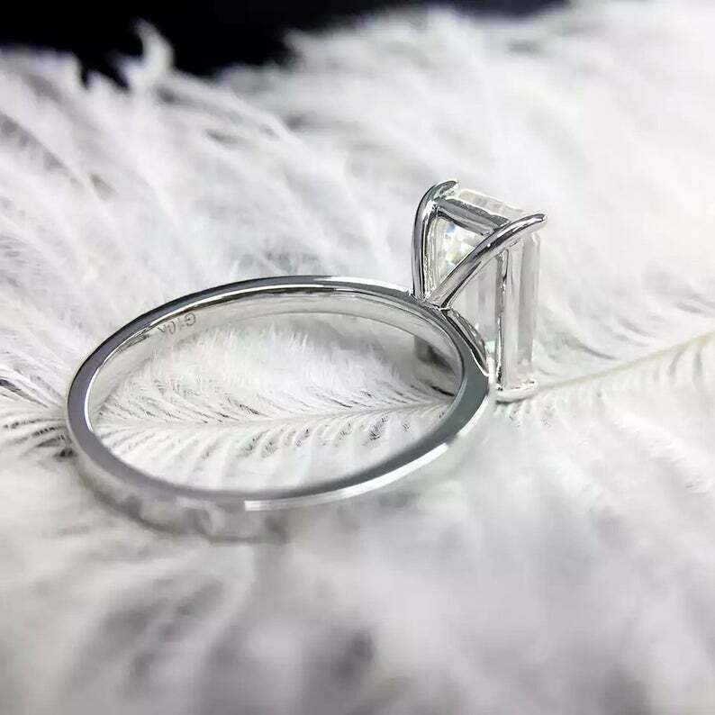 1.4ct Engagement Ring Emerald Cut Diamond Solitaire Design 14k White Gold Finish