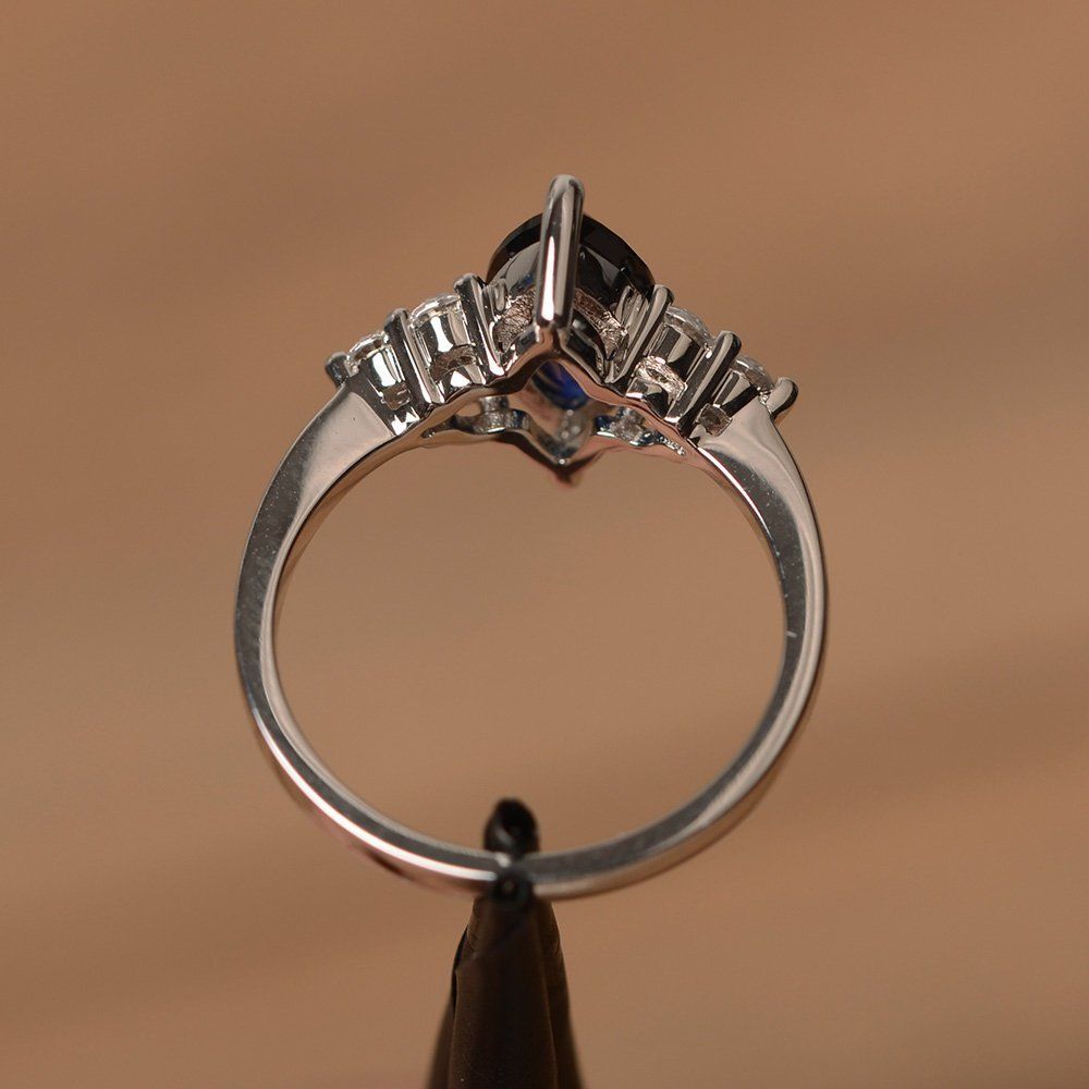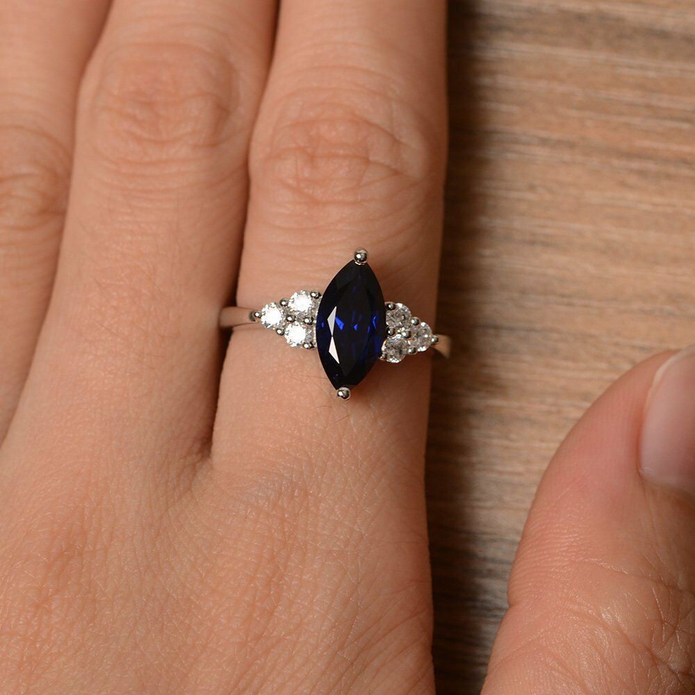 1.4ct Marquise Cut Blue Sapphire Fancy Design Engagement Ring 14k WhiteGold Over