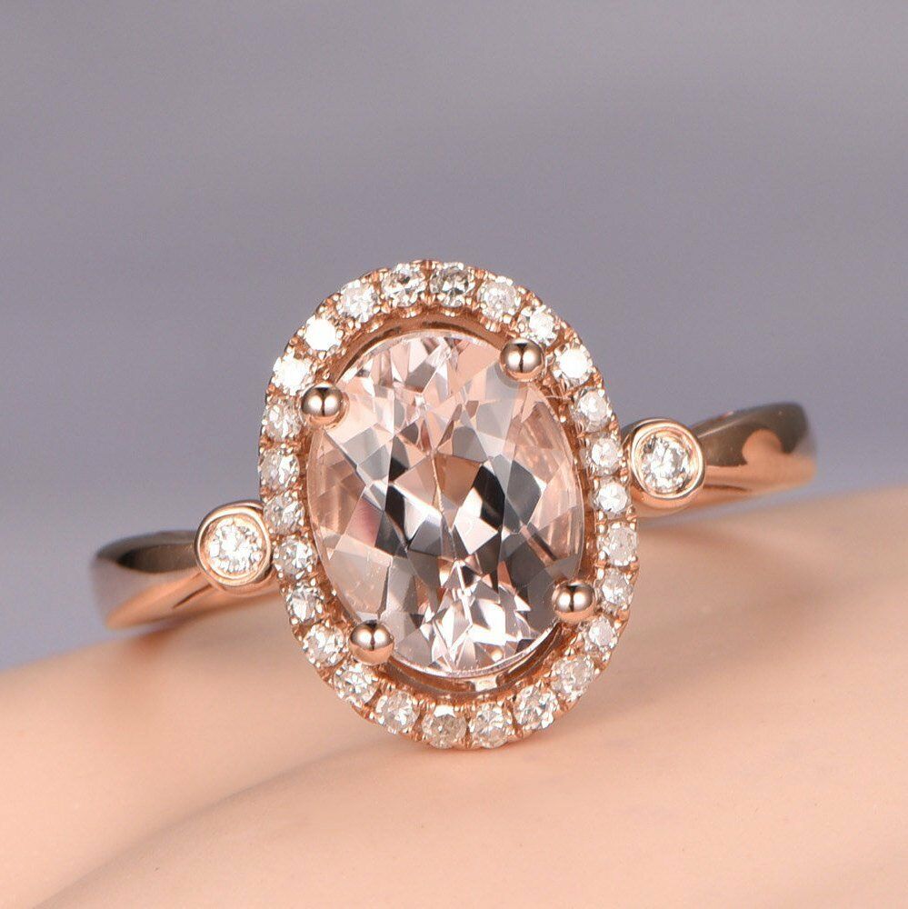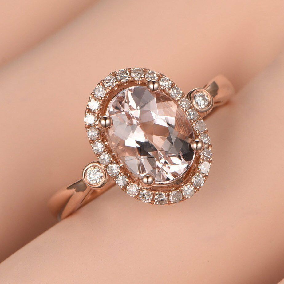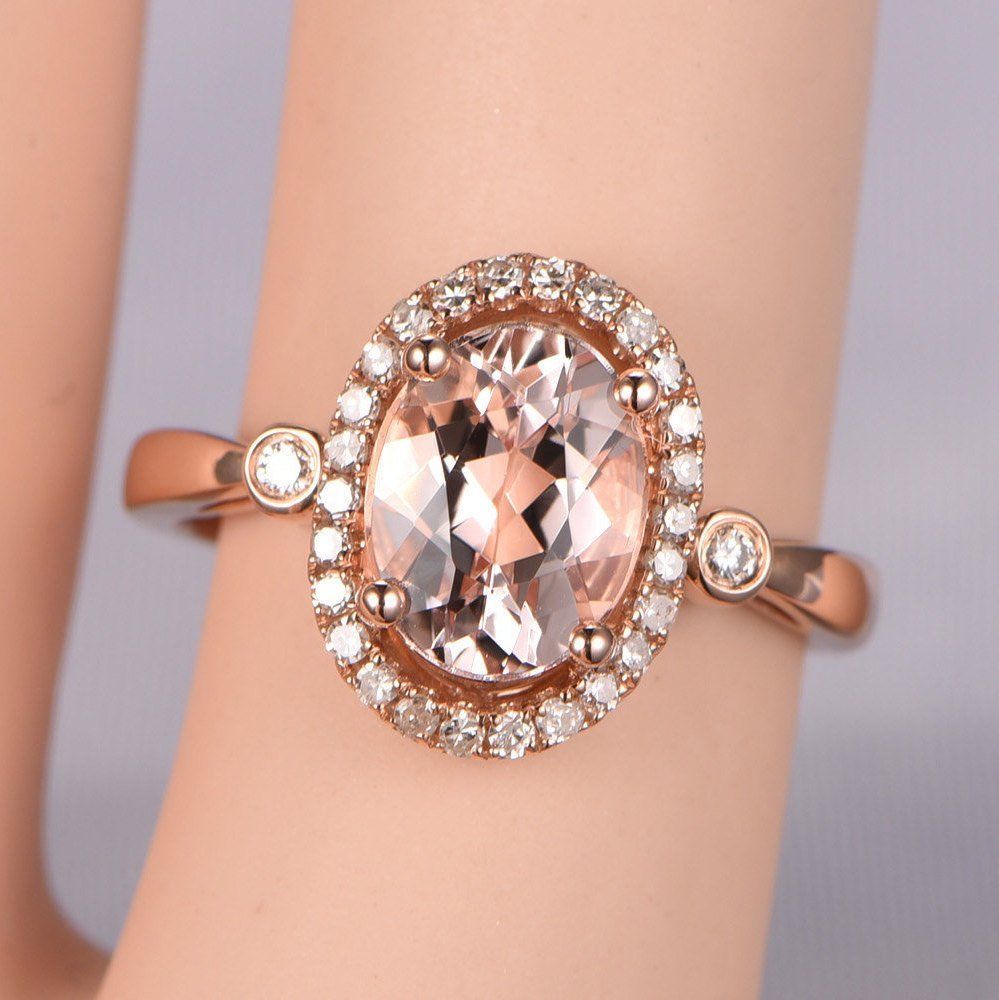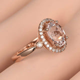 1.4ct Oval Cut Peach Morganite Halo Solitaire Engagement Ring 14k Rose Gold Over