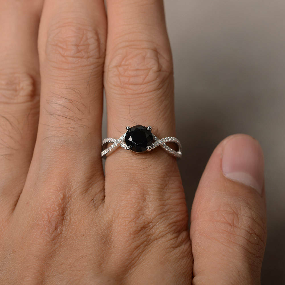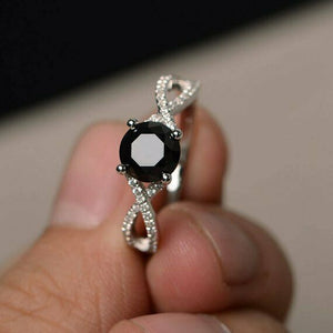 1.4ct Round Black Diamond Engagement Ring 14k White Gold Finish Infinity Promise