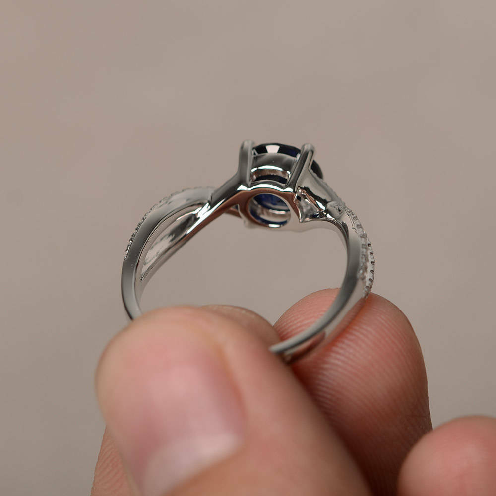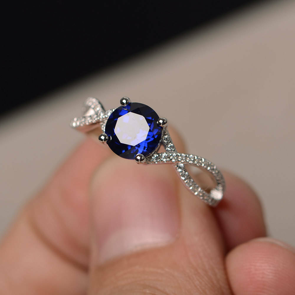 1.4ct Round Blue Sapphire Engagement Ring 14k White Gold Finish Infinity Promise