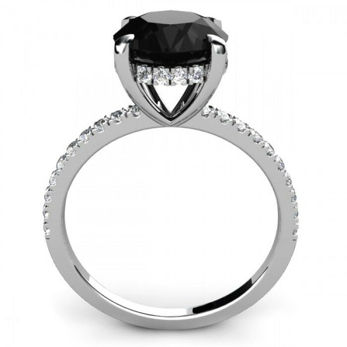 1.4ct Round Cut Black Diamond Solitaire Engagement Ring 14k White Gold Finish