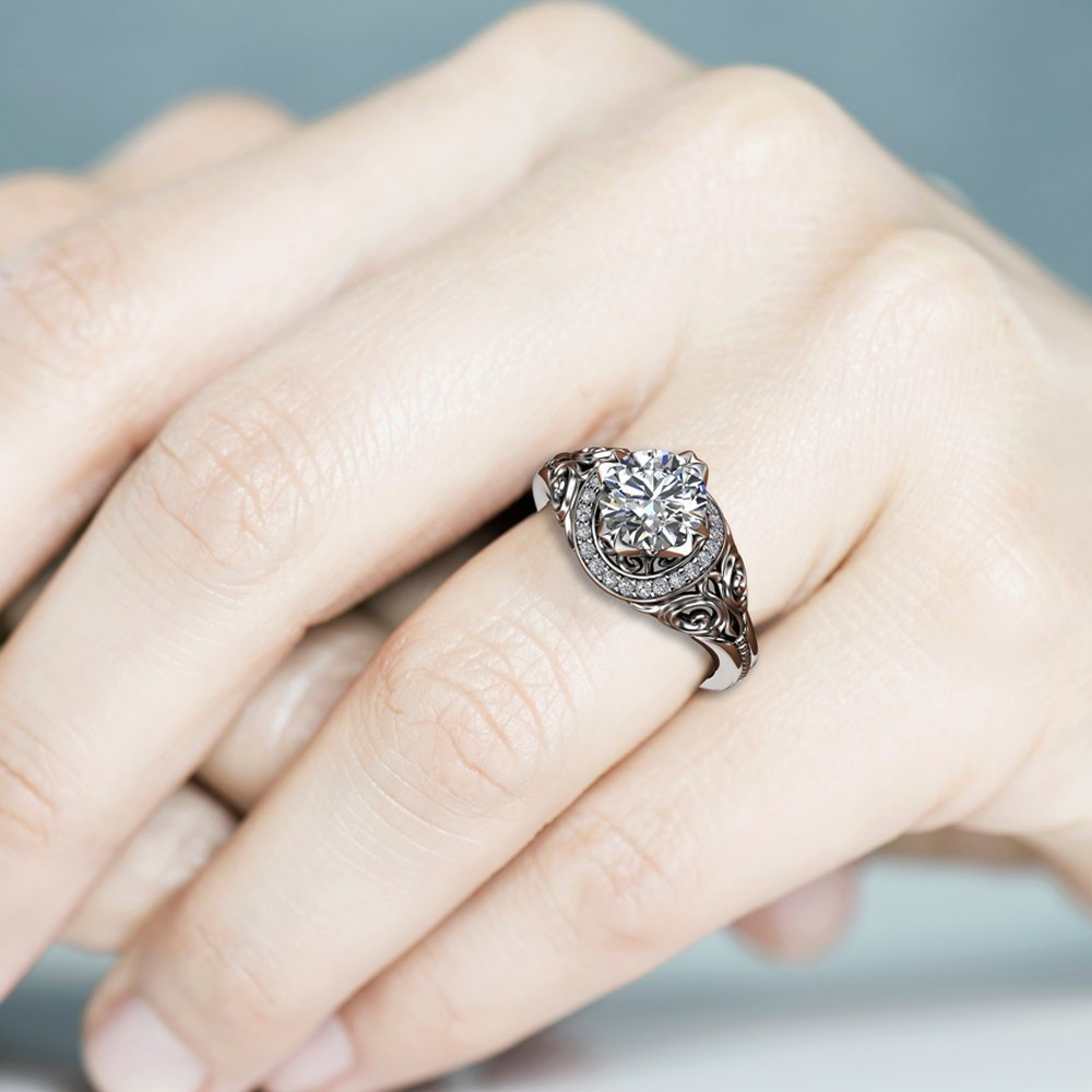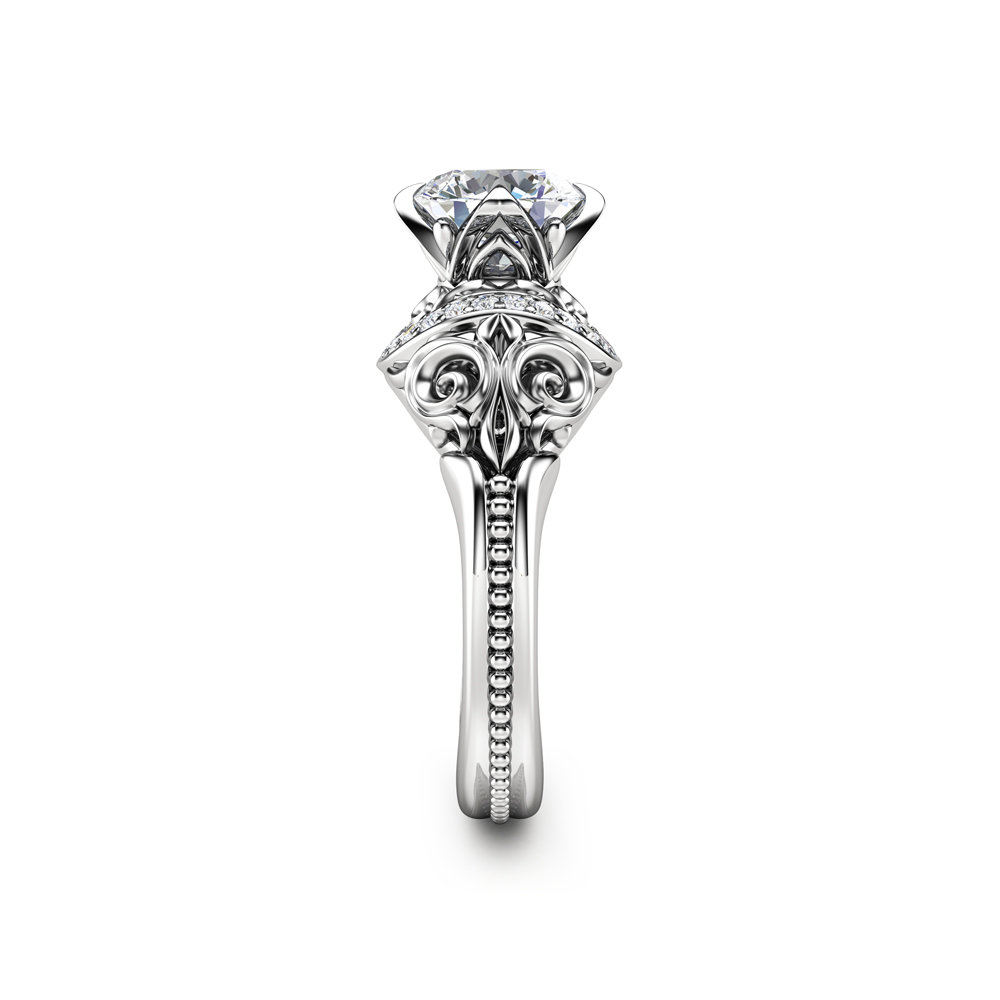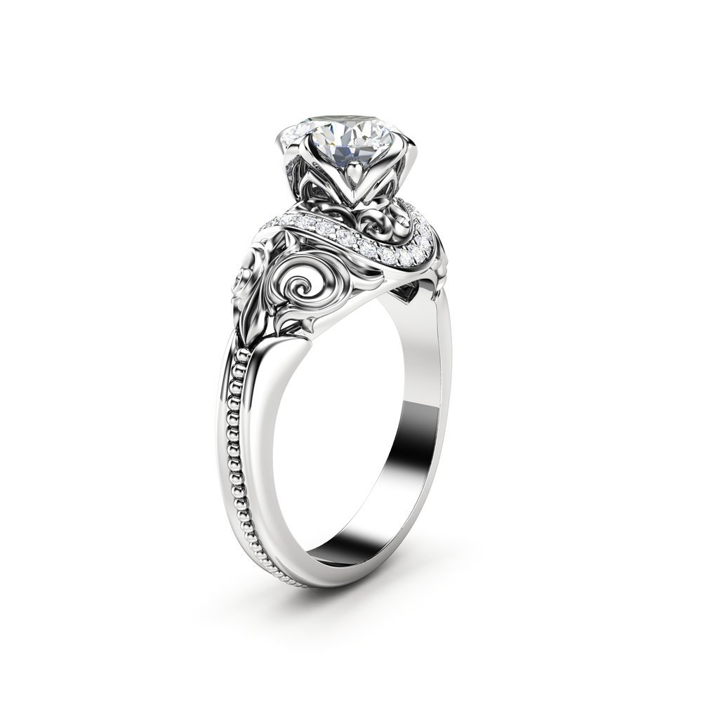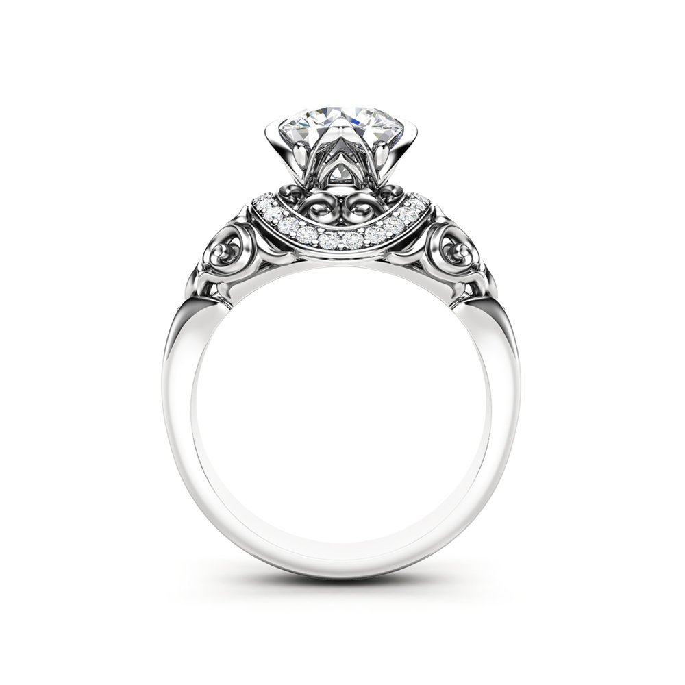 1.4ct Round Cut Diamond Engagement Ring 14k White Gold Finish Art Deco Vintage