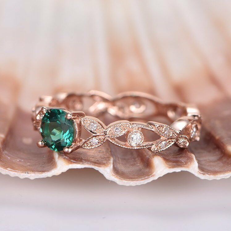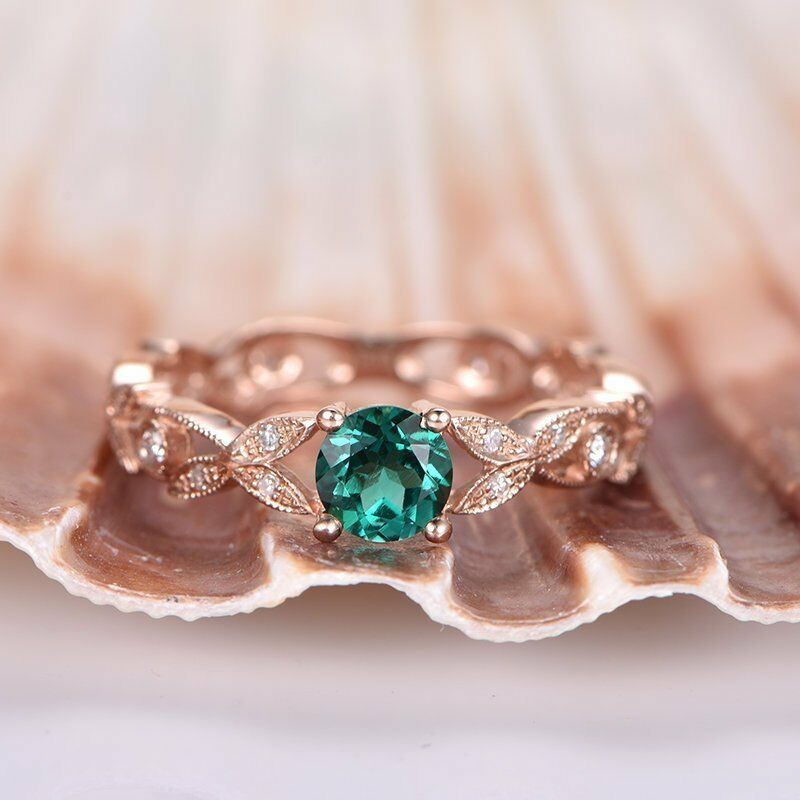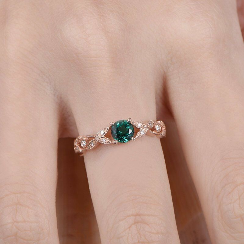 1.4ct Round Cut Green Emerald Vintage Floral Engagement Ring 14k RoseGold Finish