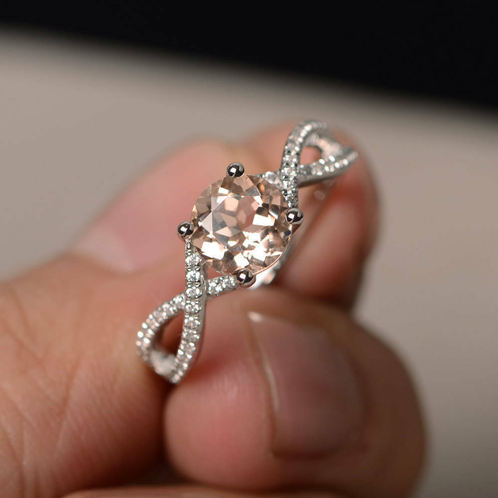 1.4ct Round Cut Peach Morganite Engagement Ring 14k White Gold Finish Infinity