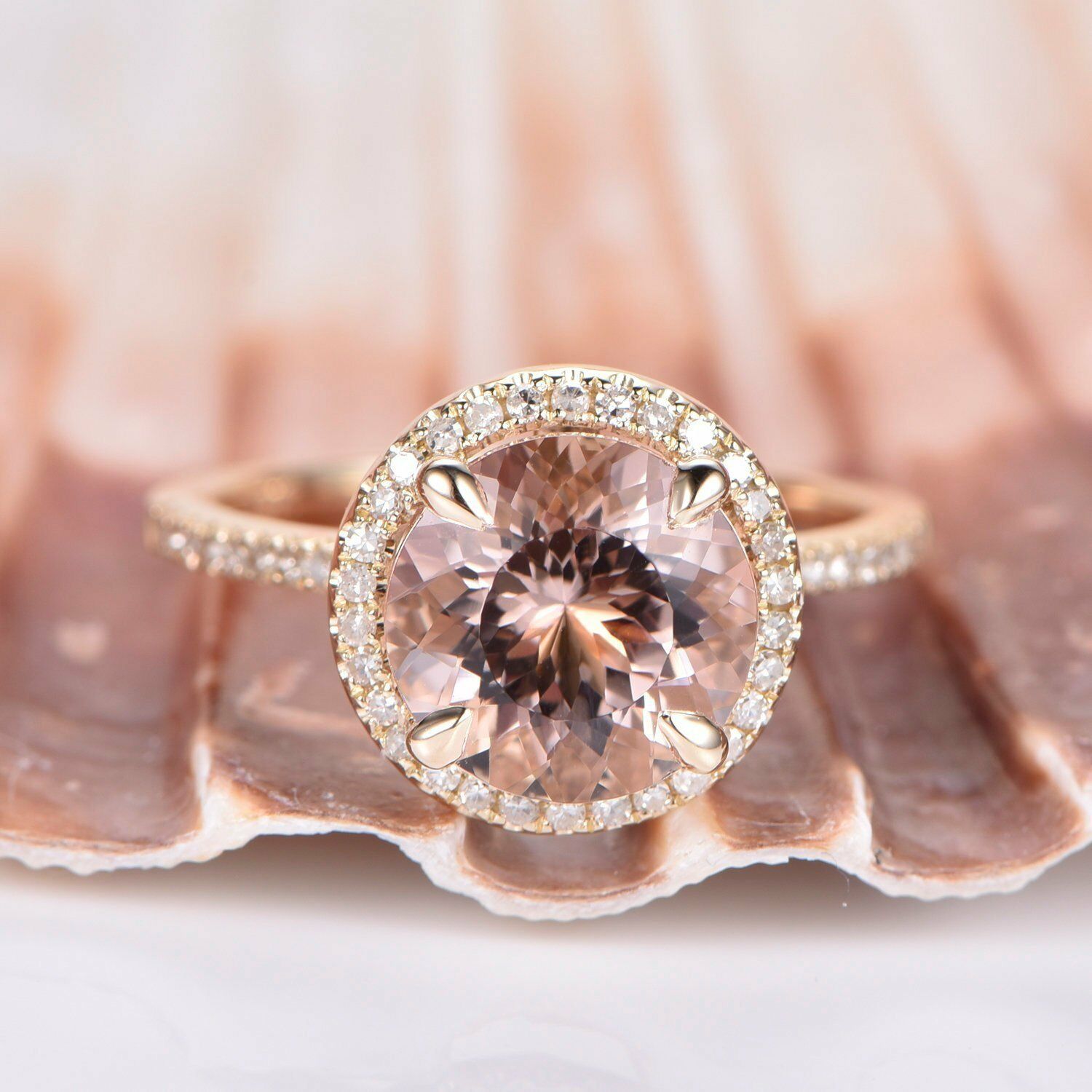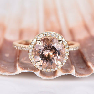 1.4ct Round Cut Peach Morganite Halo Promise Engagement Ring 14k YellowGold Over