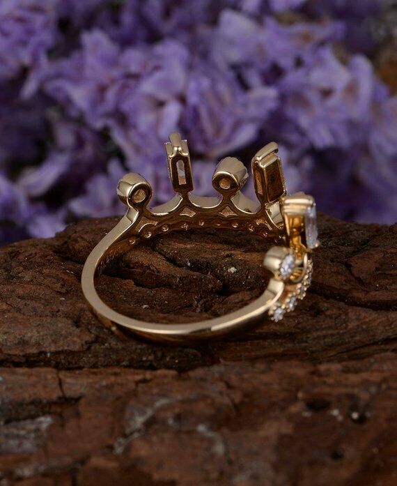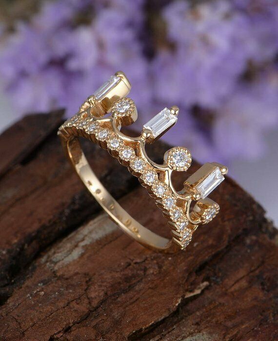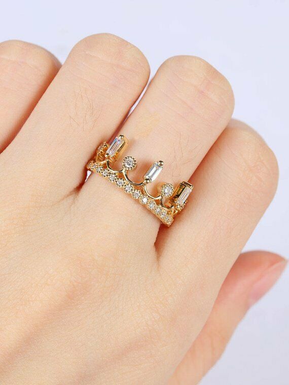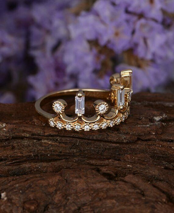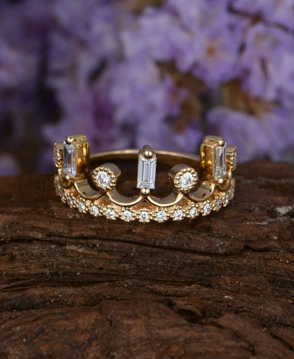 1.5ct Baguette Cut Diamond Engagement Ring 14k Yellow Gold Finish Crown Design