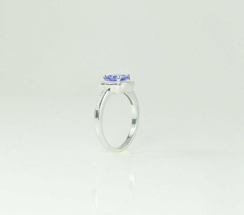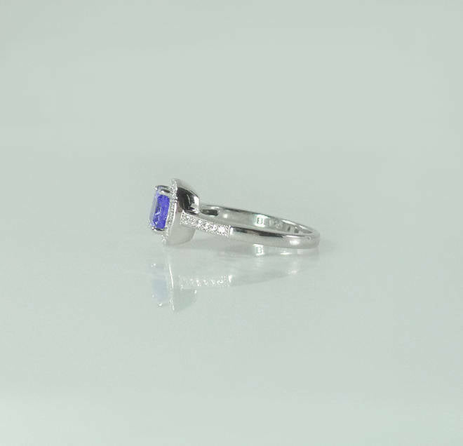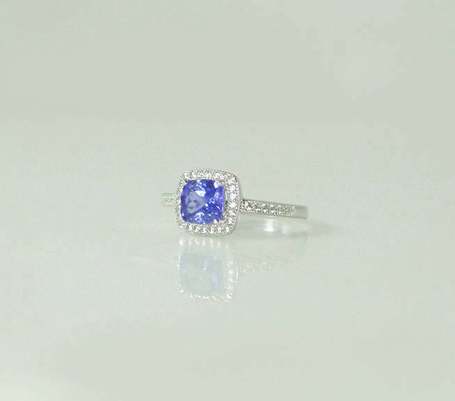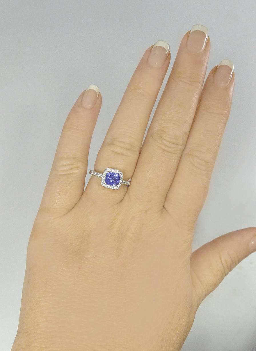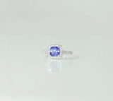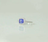1.5ct Cushion Cut Blue Tanzanite Engagement Ring 14k White Gold Finish Halo