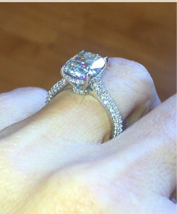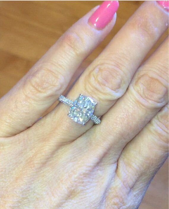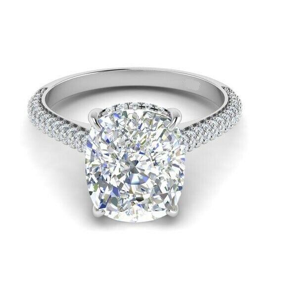 1.5ct Cushion Cut Diamond Accents Solitaire Engagement Ring 14k WhiteGold Finish