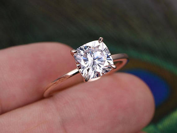 1.5ct Cushion Cut Diamond Engagement Ring 14k Rose Gold Finish Solitaire Wedding