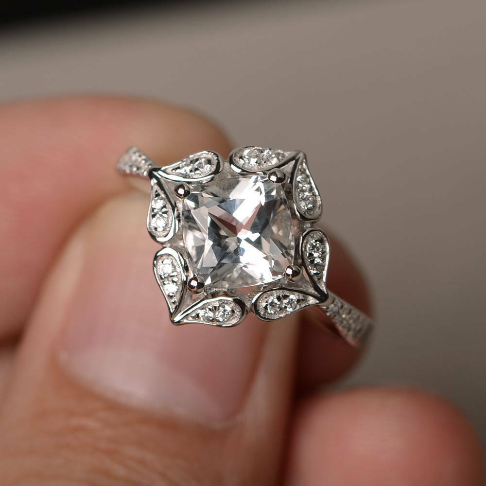 1.5ct Cushion Cut Diamond Engagement Ring 14k White Gold Finish Floral Promise