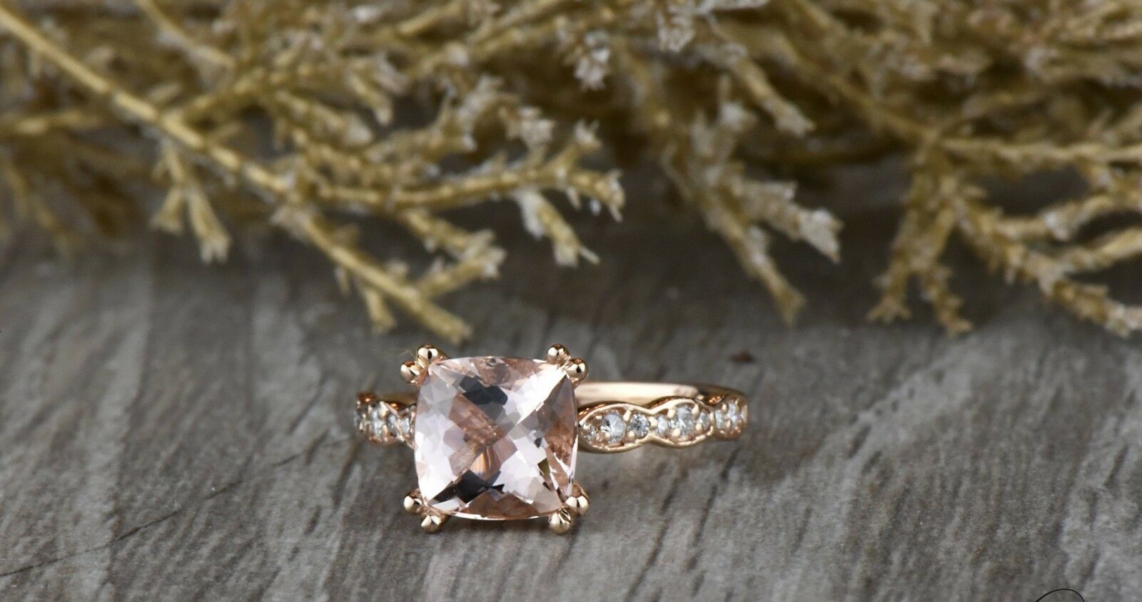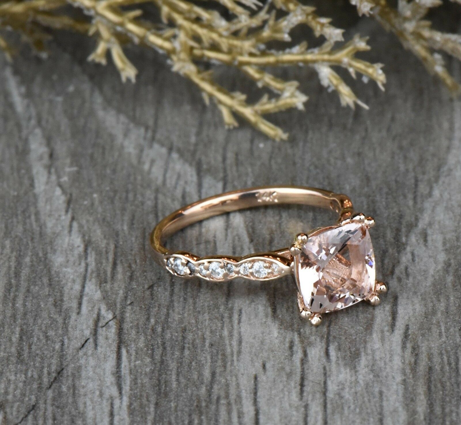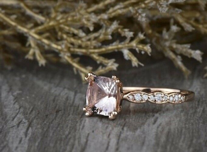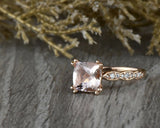 1.5ct Cushion Cut Peach Morganite Engagement Ring 14k Rose Gold Finish Solitaire