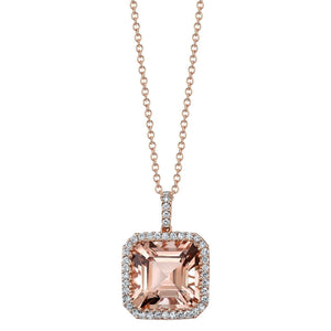 1.5ct Cushion Cut Peach Morganite Halo Pendant 14k Rose Gold Finish NO CHAIN