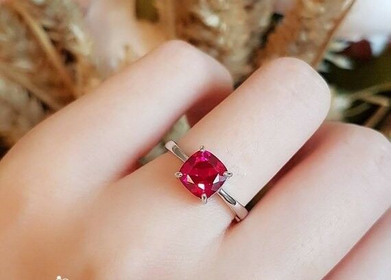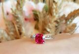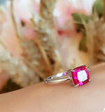 1.5ct Cushion Cut Pink Ruby Engagement Ring 14k White Gold Finish Solitaire