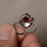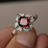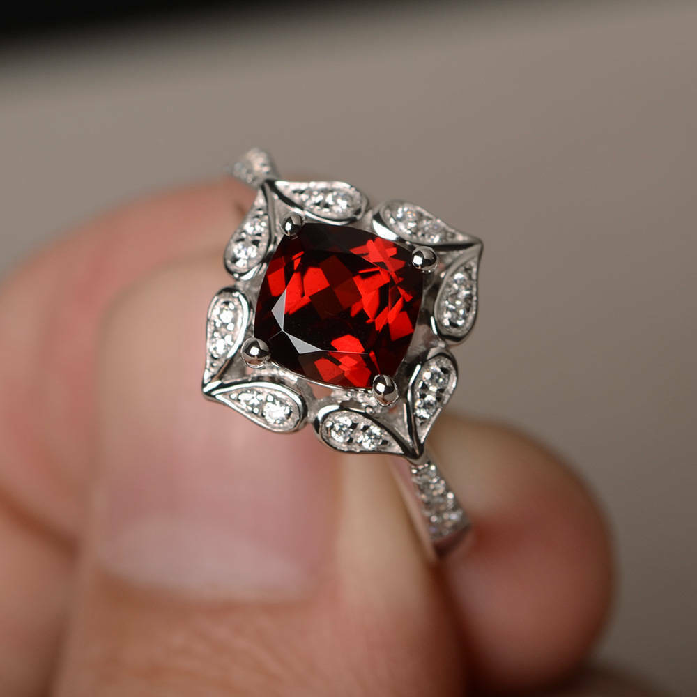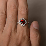 1.5ct Cushion Cut Red Garnet Engagement Ring 14k White Gold Finish Floral Women