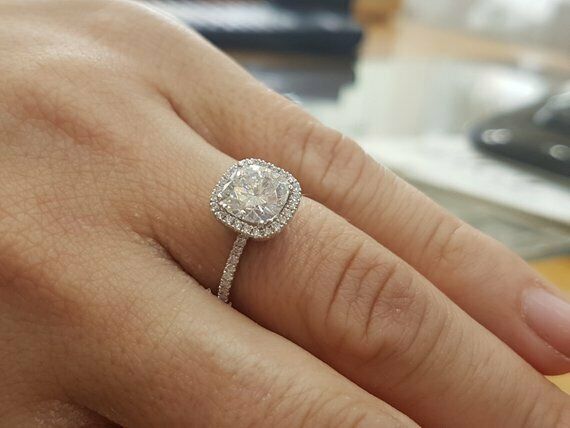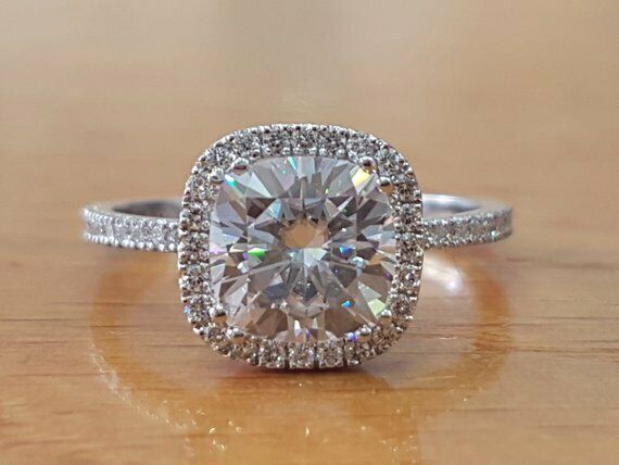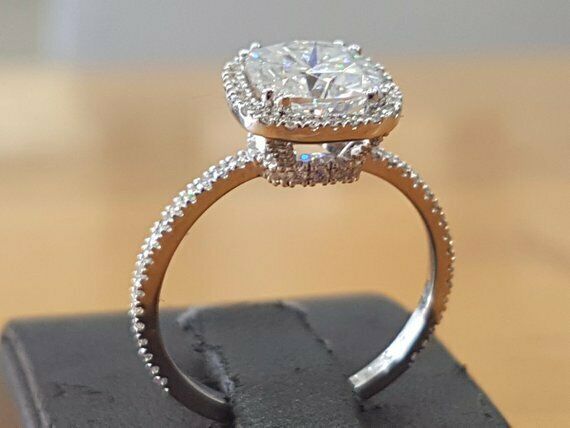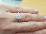 1.5ct Cushion Cut VVS1 Diamond Accents Halo Engagement Ring 14k WhiteGold Finish