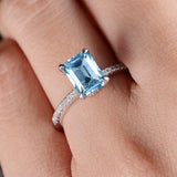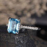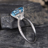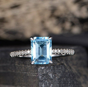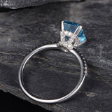 1.5ct Emerald Cut Blue Topaz Halo Solitaire Engagement Ring 14k WhiteGold Finish