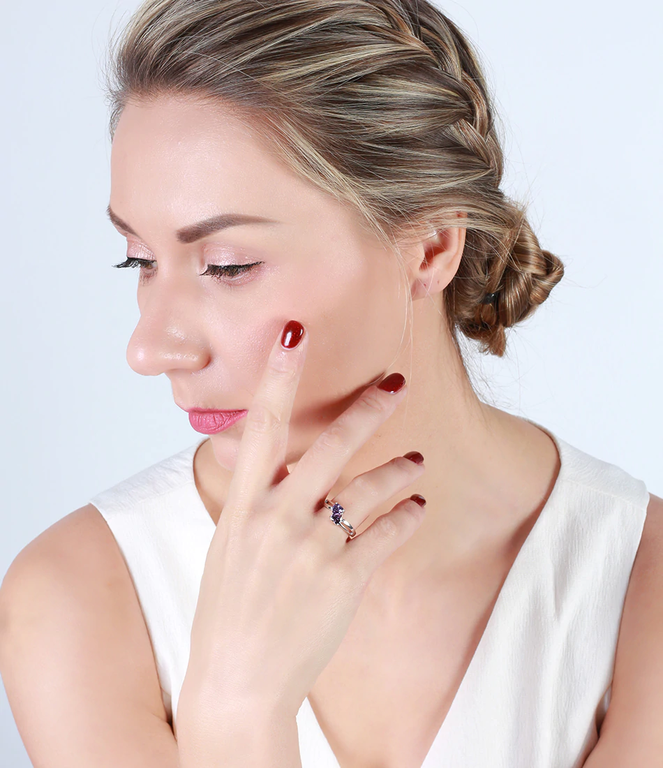1.5ct Heart Cut Purple Amethyst Engagement Ring 14k White Gold Finish Solitaire