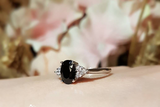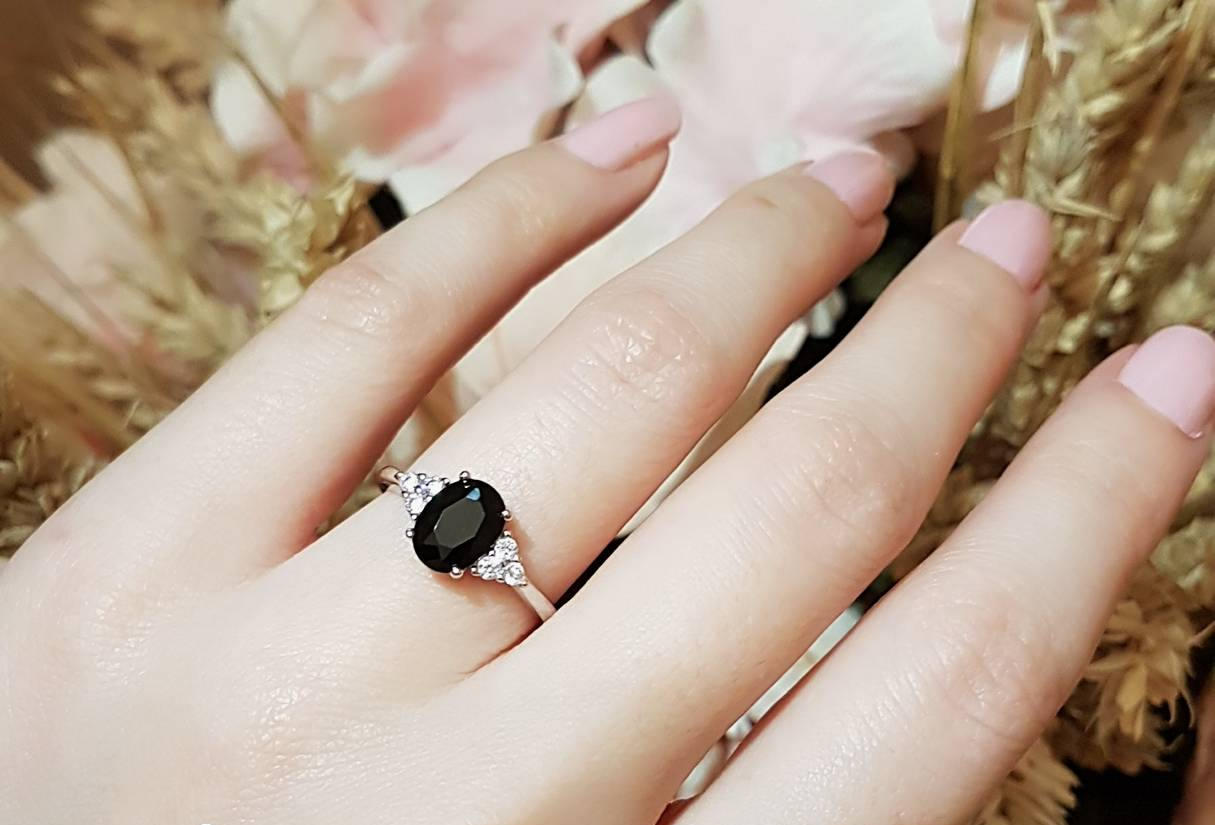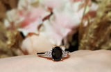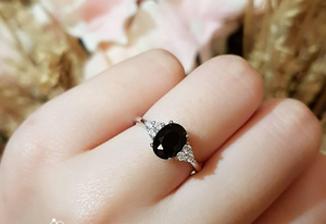 1.5ct Oval Cut Black Diamond Engagement Ring 14k White Gold Finish Trilogy Style