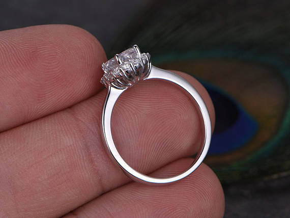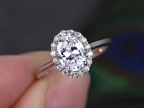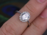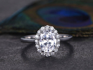 1.5ct Oval Cut Diamond Engagement Ring 14k White Gold Finish Halo Floral Promise
