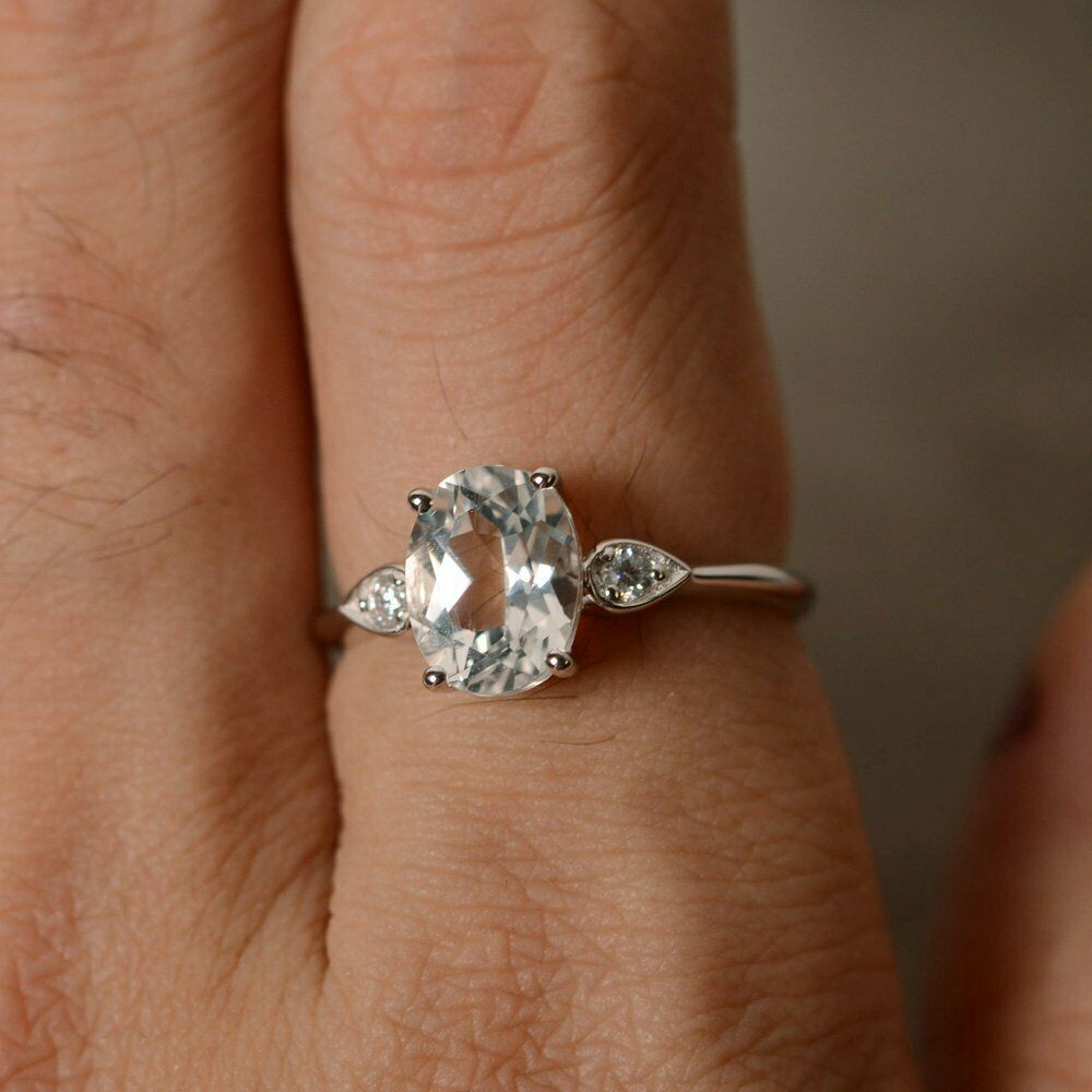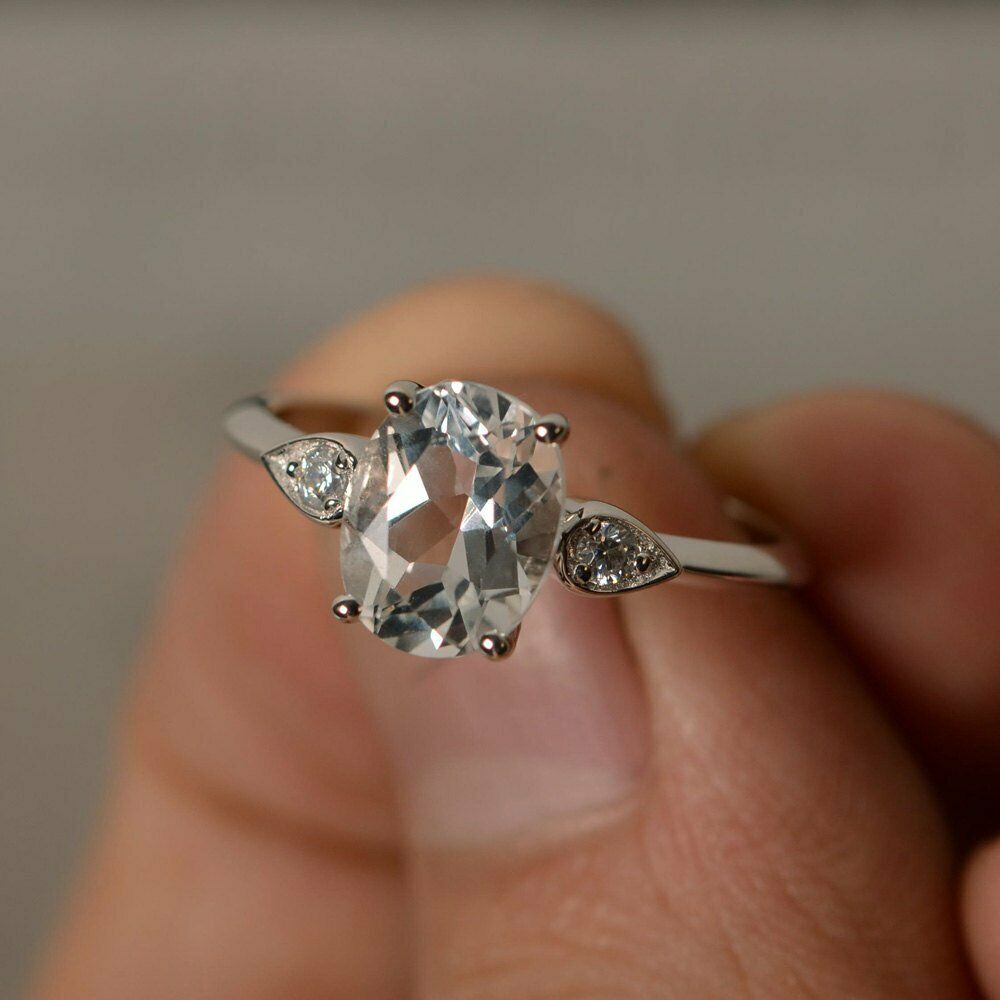 1.5ct Oval Cut Diamond Engagement Ring 14k White Gold Finish Trilogy Solitaire