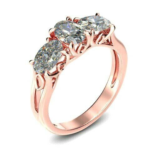 1.5Ct Oval Cut Diamond Filigree Trilogy Engagement Ring 14K Rose Gold Finish