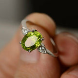 1.5ct Oval Cut Green Peridot Engagement Ring 14k White Gold Finish Three Stone