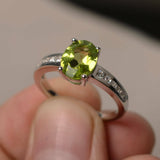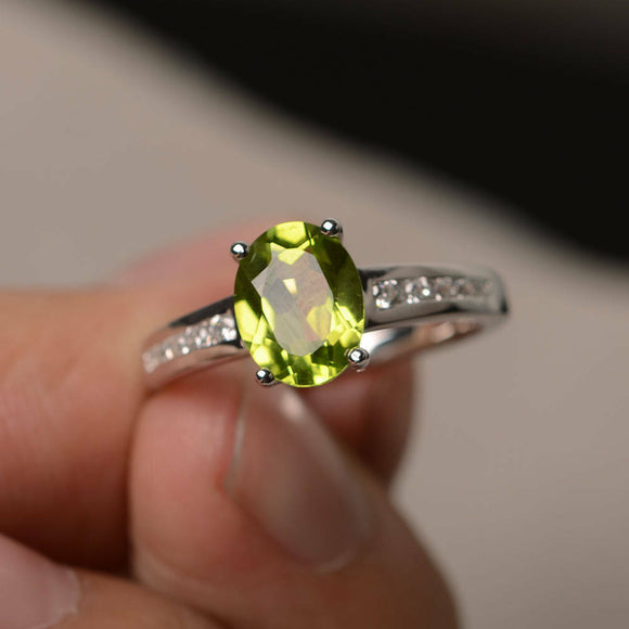 1.5ct Oval Cut Green Peridot Engagement Ring 14k WhiteGold Finish Diamond Accent