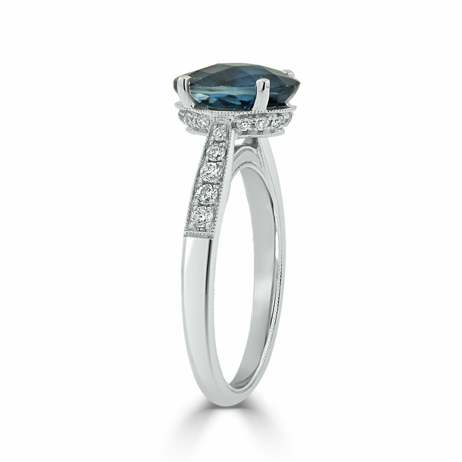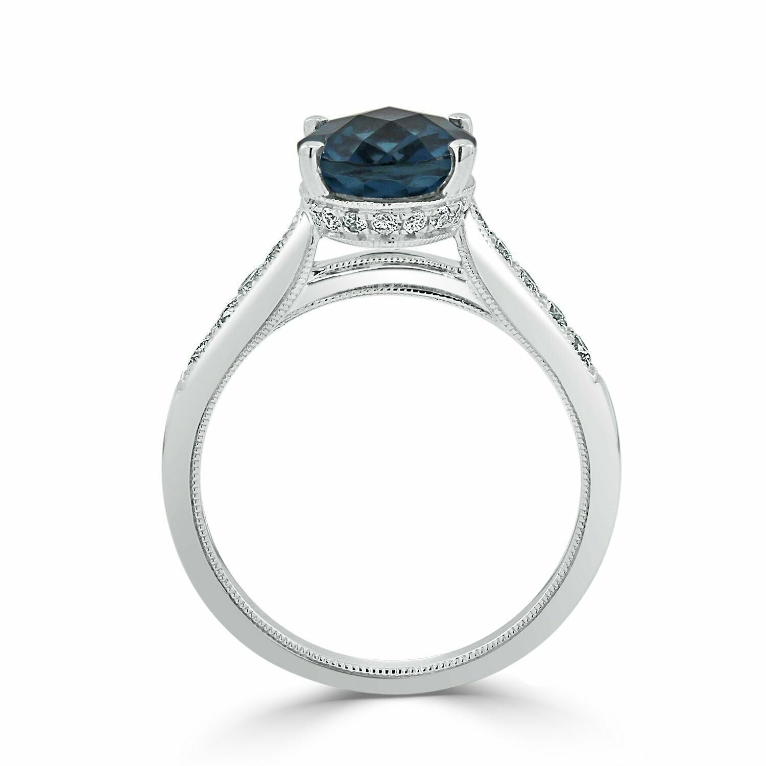 1.5Ct Oval Cut London Blue Topaz Solitaire Engagement Ring 14K White Gold Finish
