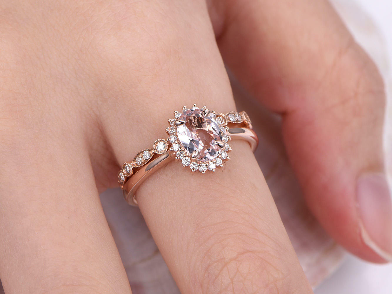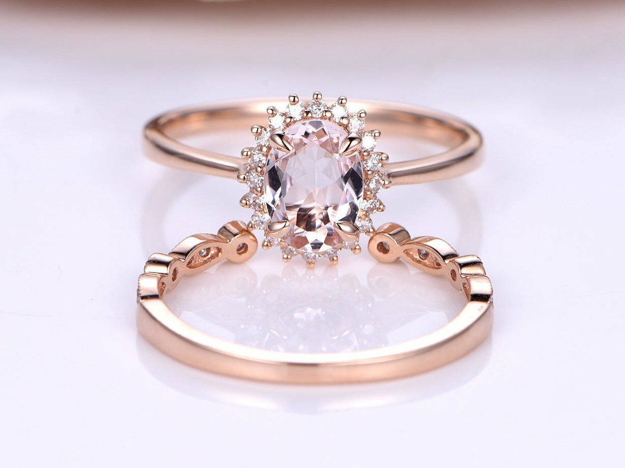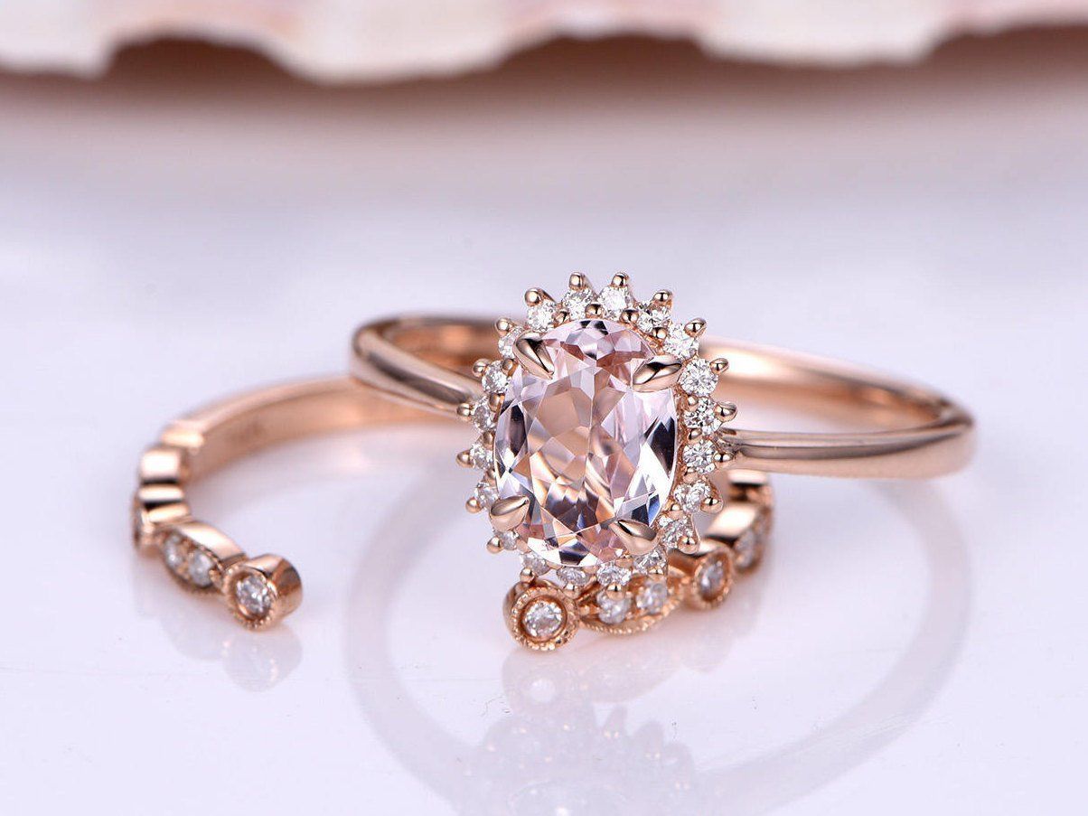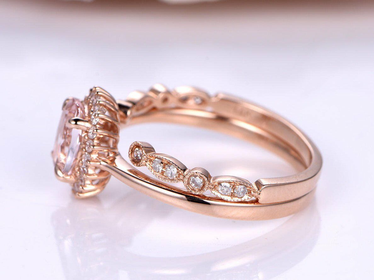 1.5ct Oval Cut Peach Morganite Bridal Set Engagement Ring 14k Rose Gold Finish