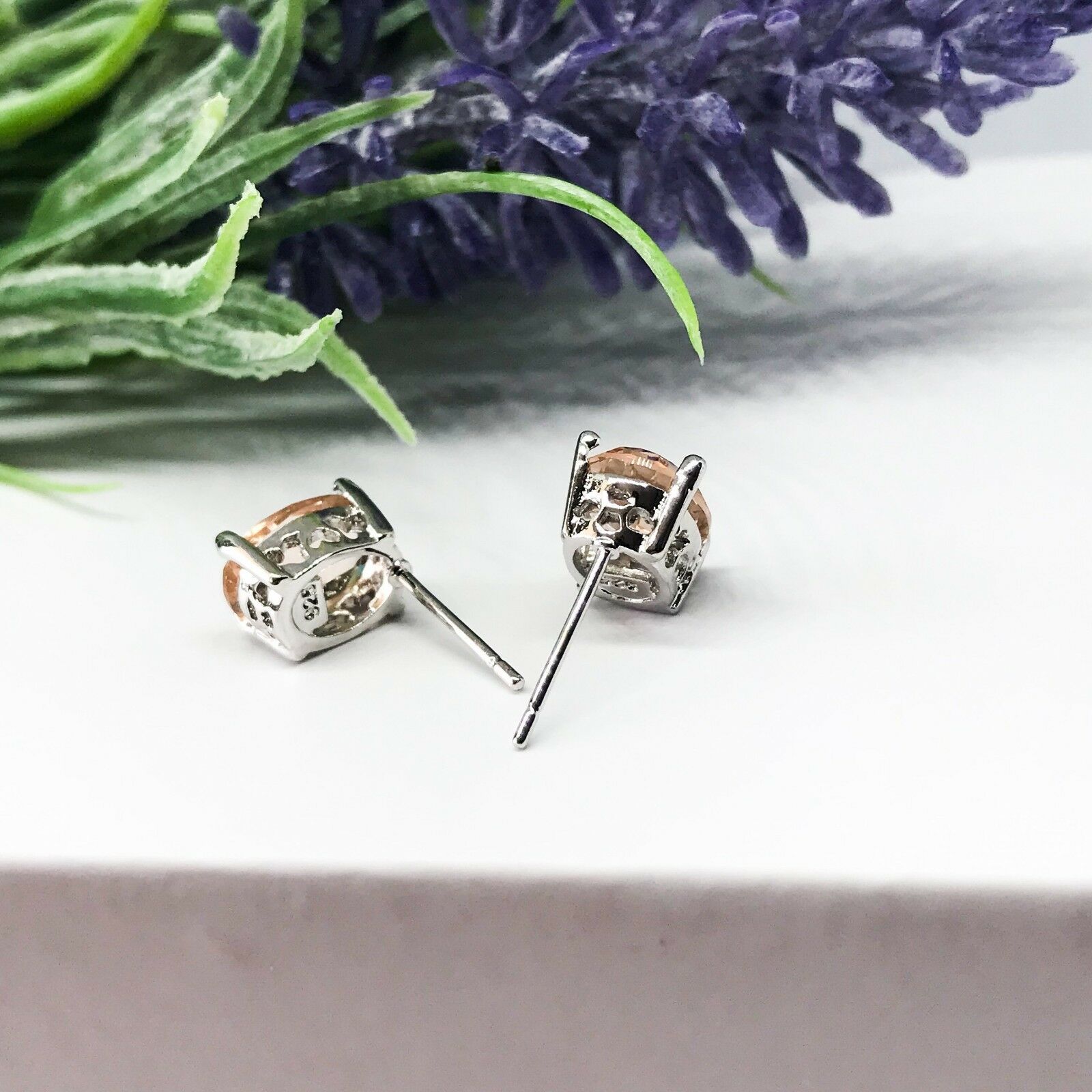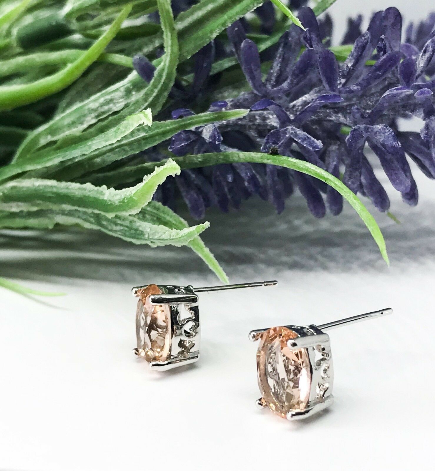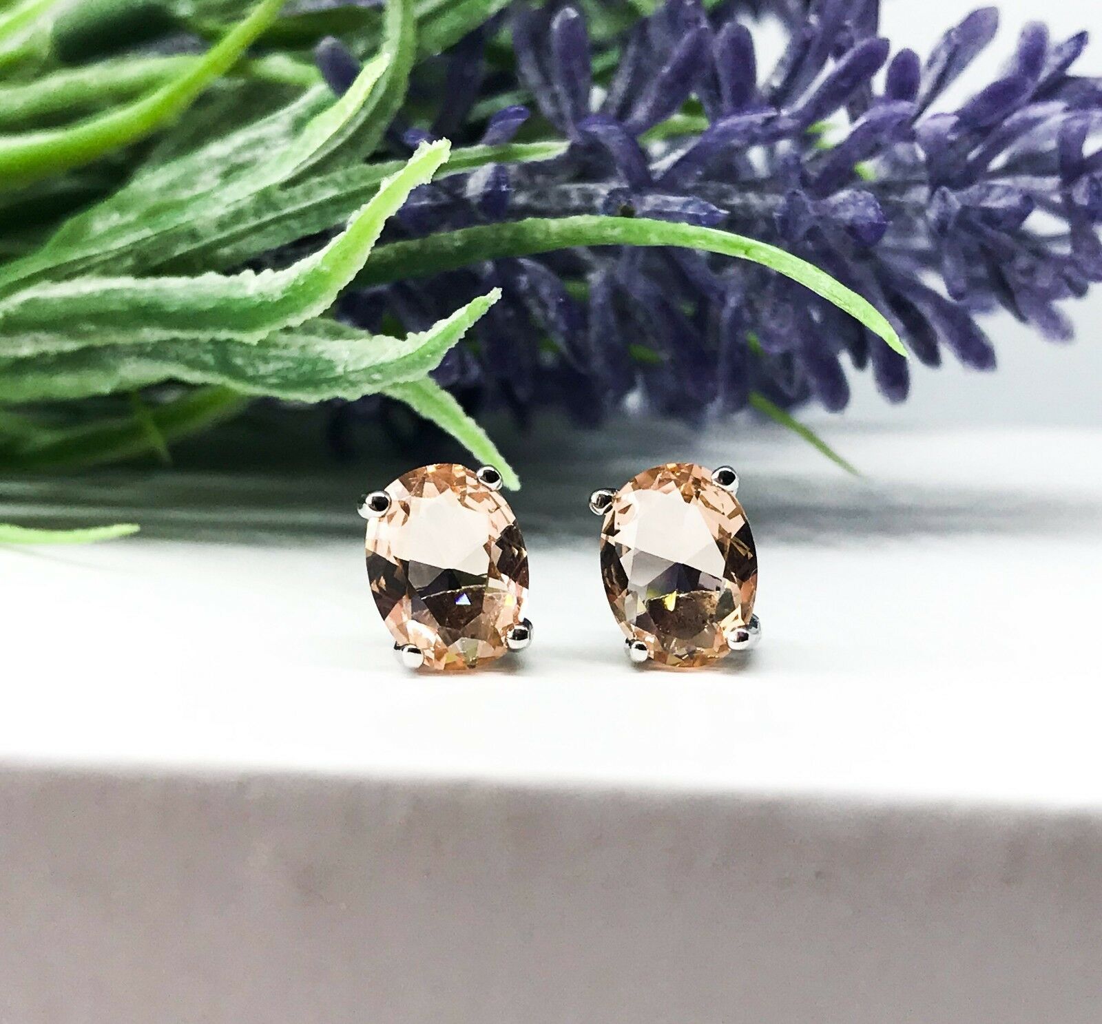 1.5Ct Oval Cut Peach Morganite Solitaire Stud Earring Women 14K White Gold Over