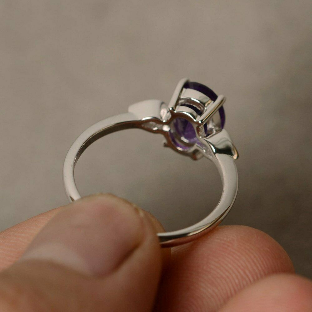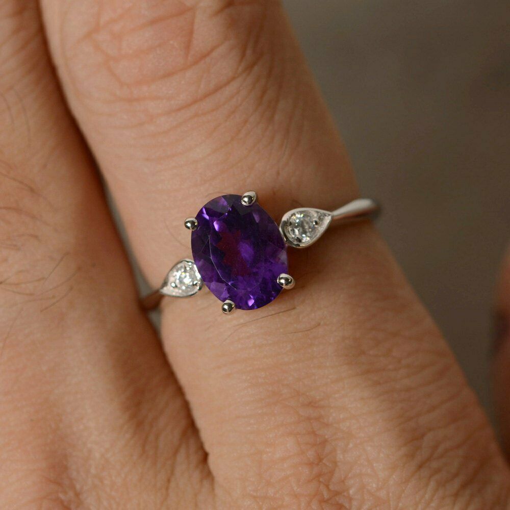 1.5ct Oval Cut Purple Amethyst Engagement Ring 14k White Gold Finish Three Stone