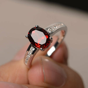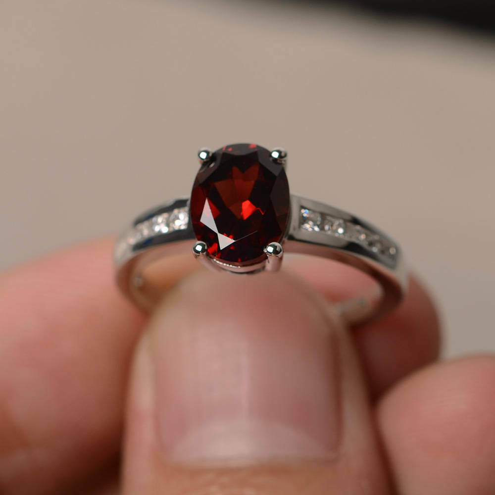 1.5ct Oval Cut Red Garnet Engagement Ring 14k White Gold Finish Diamond Accent