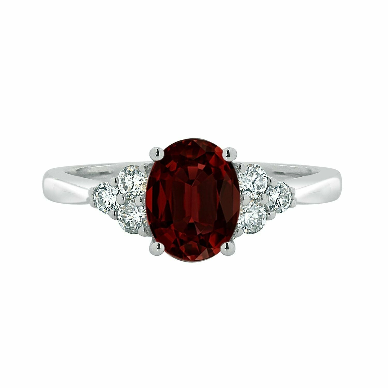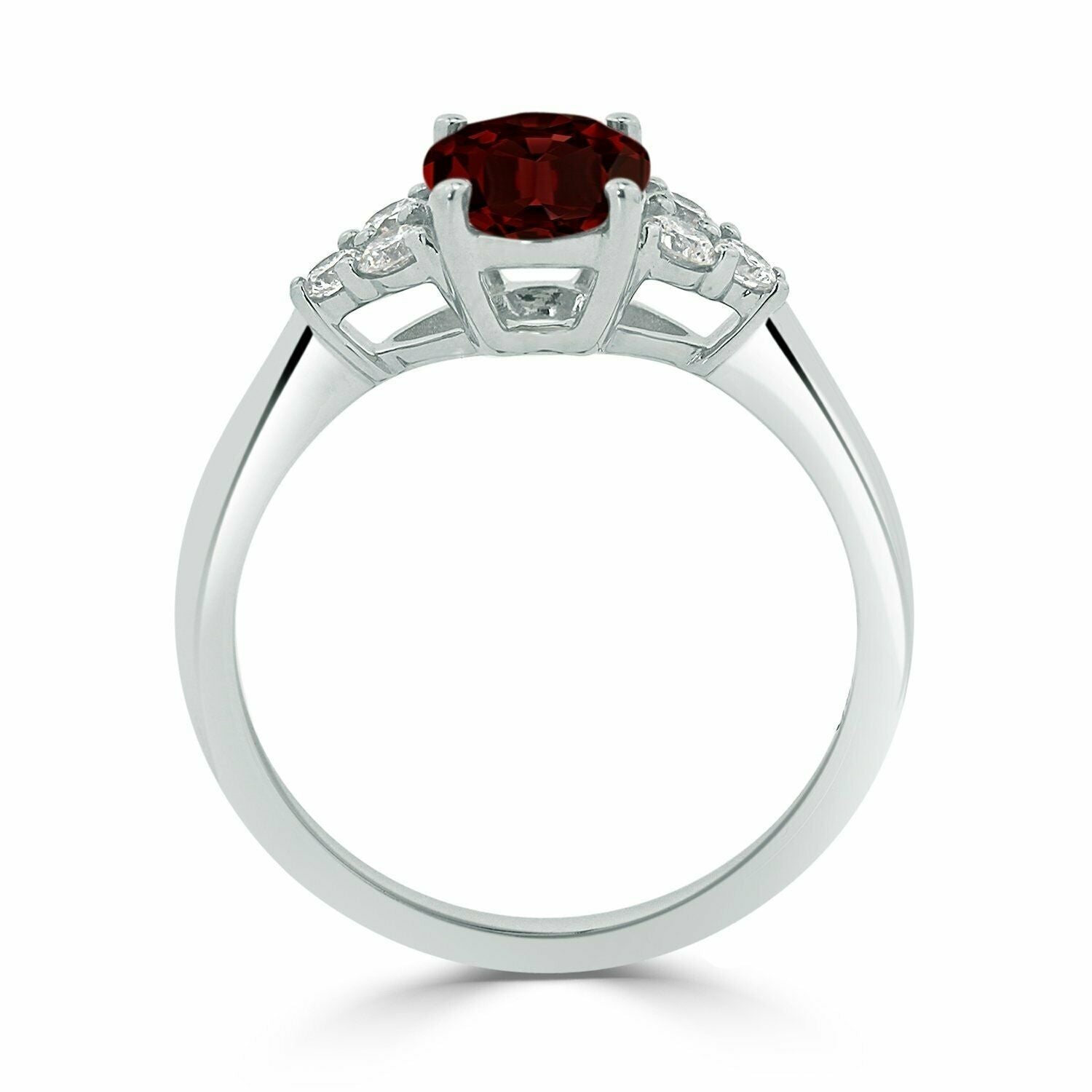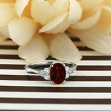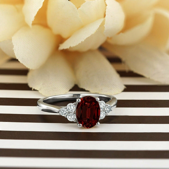1.5Ct Oval Cut Red Garnet Engagement Ring 14K White Gold Finish Diamond Accents