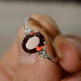 1.5ct Oval Cut Red Garnet Engagement Ring 14k White Gold Finish Three Stone