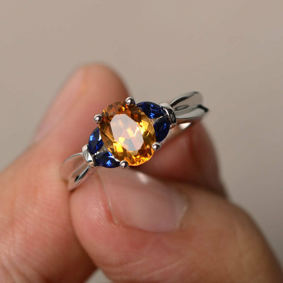 1.5ct Oval Cut Yellow Citrine Engagement Ring 14k White Gold Over Leaf Solitaire