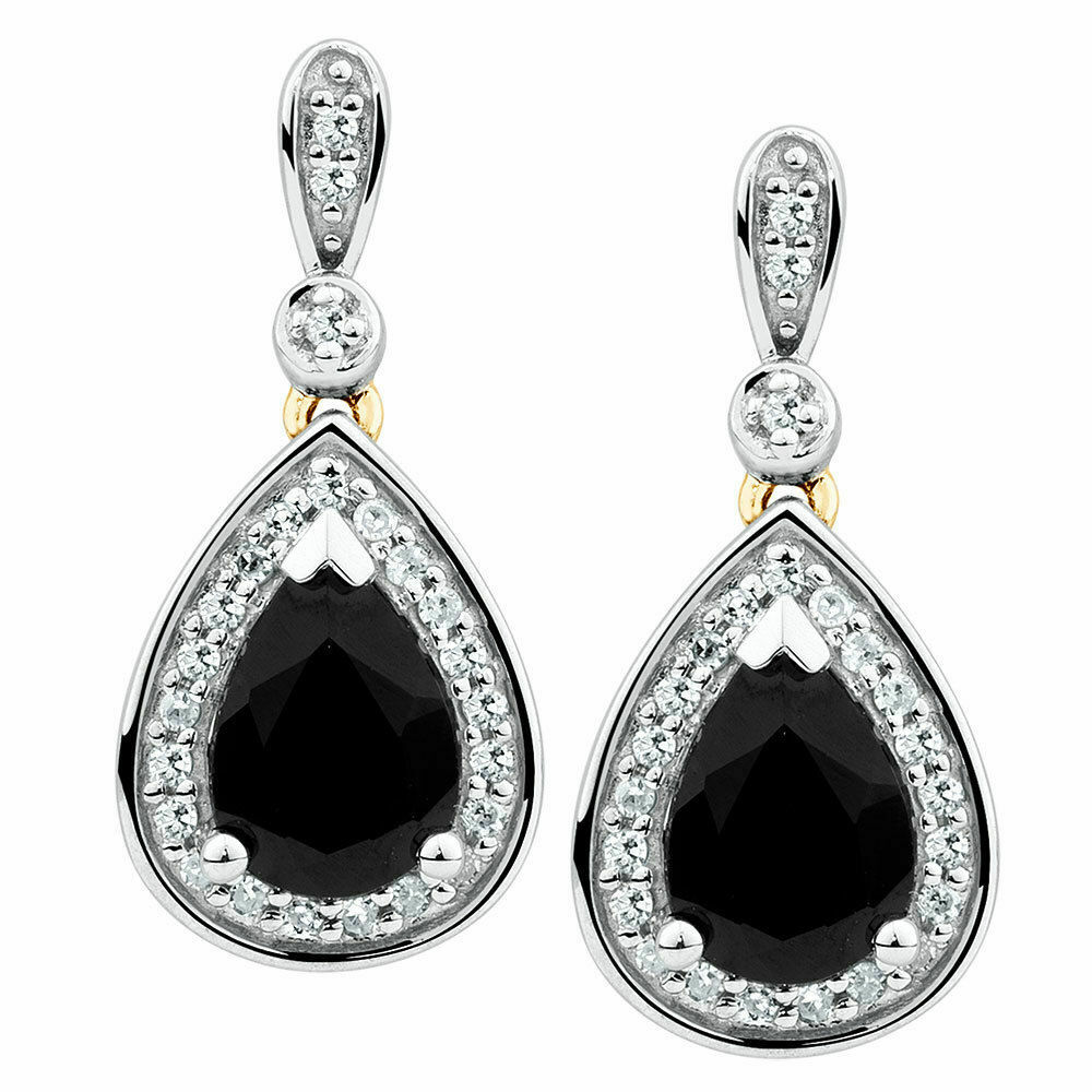 1.5ct Pear Cut Black Spinel Diamond Tear Drop Earrings 14k White Gold Finish New