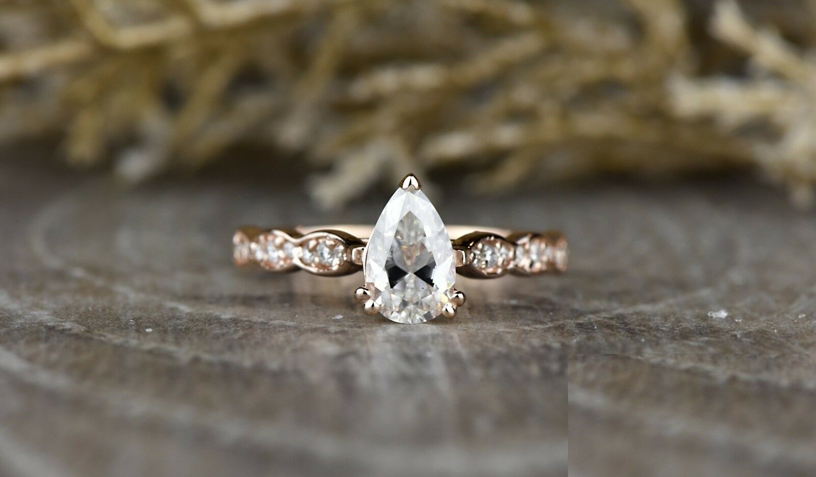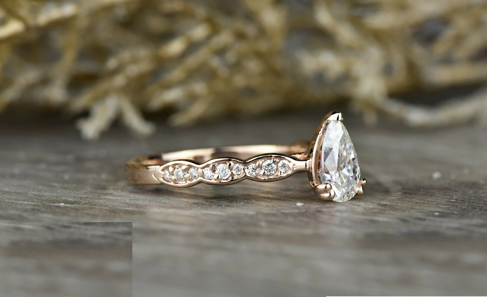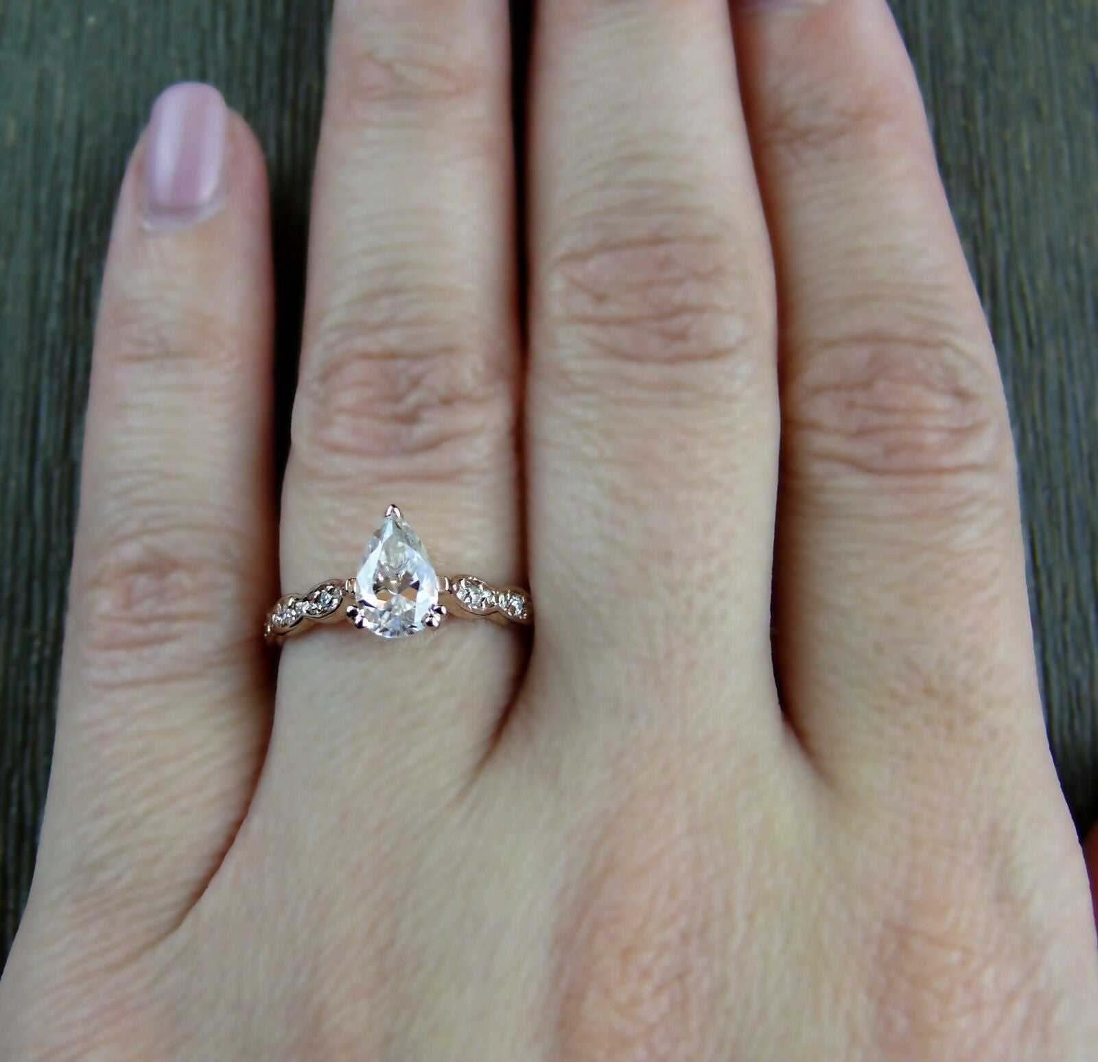 1.5ct Pear Cut VVS1 Diamond Engagement Ring 14k Rose Gold Finish Vintage Wedding